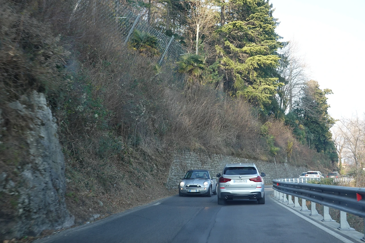 새해 첫날이 밝았다. 코모(Como) 호수로 향하기 위해 자동차 시동을 켰다. 호수길을 따라 유유히 드라이브를 나선 셈이다. 길은 생각보다 쉽지 않았다. 산길에서 커브 길이 빠지면 섭섭하다지만, 도로 폭이 생각보다 좁아 방어 운전에 신경 써야 한다. 여행객들이야 천천히 주행한다고 하지만 이탈리아 사람들은 차도 워낙 작은 데다 익숙한지 커브 길에도 속도를 줄이지 않고 달려 보조석에 앉아 있다가도 깜짝깜짝 놀라 나도 모르게 있는 힘껏 안전바를 잡게 된다. 도로 사정과 달리 호수 마을 경치는 동화 속처럼 평온했고, 여유로워 보였다. 돌산인지 눈산인지 헷갈리던 산의 정체는 알프스 쪽으로 갈수록 정상에 쌓인 눈을 보면 산의 정체를 쉽게 확인할 수 있었다. 레코(Lecco)에서 벨라지오(Bellagio)를 거쳐 코모까지 도착하는 데 두 시간 남짓 걸렸다. 원래는 30분~한 시간이면 도착하지만 맑은 공기와 경치가 만들어 내는 기운이 중간중간 우리를 멈춰 세웠다.