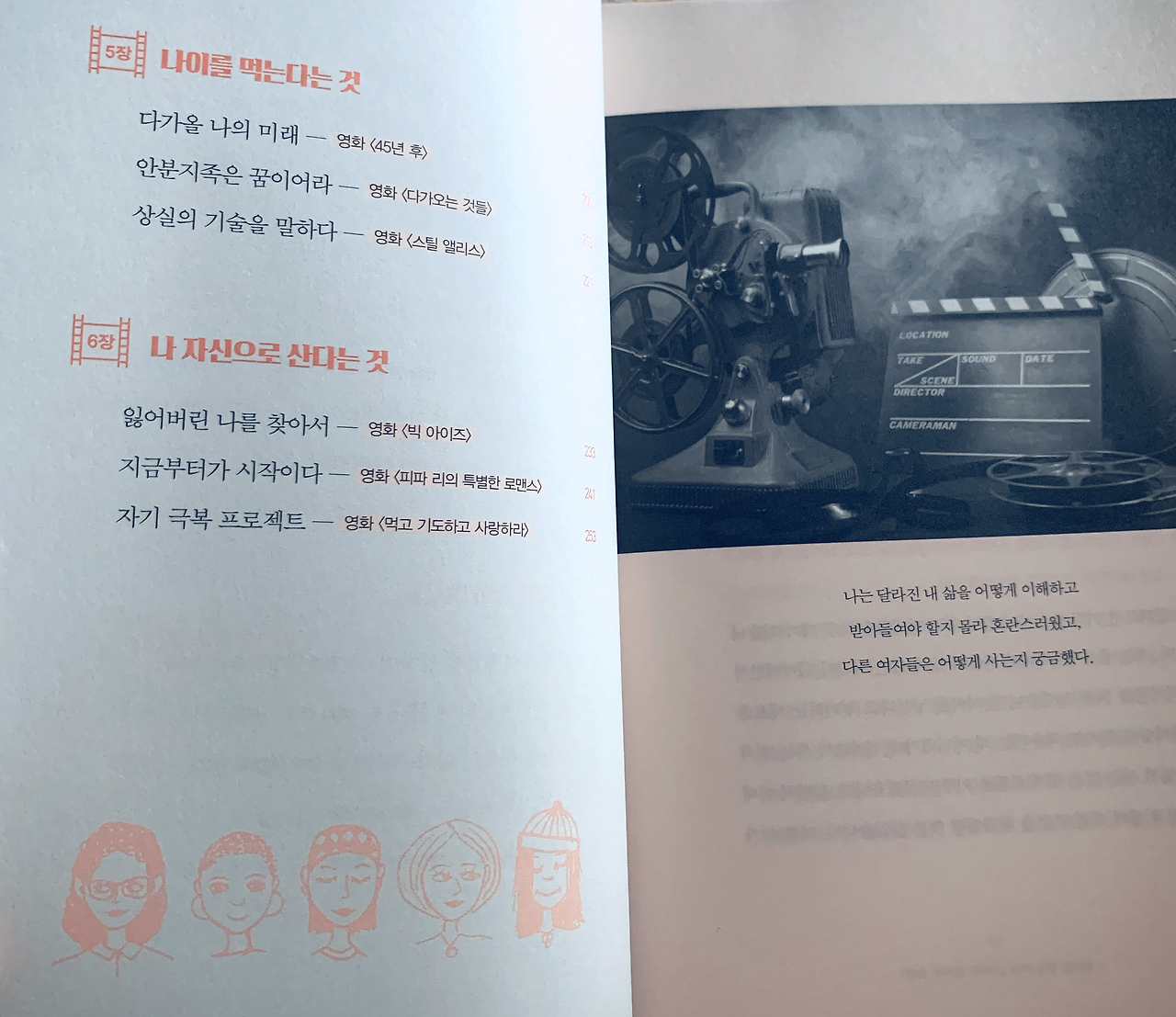 영화를 안 봤는데 이 책을 읽어도 되는지, 읽을 수 있는지 물어보시는 분들이 있어요. 저는 영화에서 발견한 ‘여성의 삶을 다룬’ 좋은 이야기를 많은 독자들과 나누고자 이 책을 썼습니다. 여성이 자기 삶의 주체가 되어 살아가는 경우와 그렇지 못한 경우의 예를 다양하게 제시하려고 했습니다. 이 다양한 삶의 이야기가 같은 여자로서 나는 어떻게 살아야 할지 계속 생각하게 하기 때문입니다. 23편의 이야기가 수록되어 있는데 그 영화를 다 보고 책을 읽는다는 건 무리예요. 불가능하다고 생각합니다. ^^ 영화를 소재로 쓴 글이지만, 영화와는 별개로 읽힐 수 있길 바래요. 네, 단도직입적으로 말씀드리면 영화를 보고 안 보고는 이 책을 읽는데 전혀 문제되지 않아요.