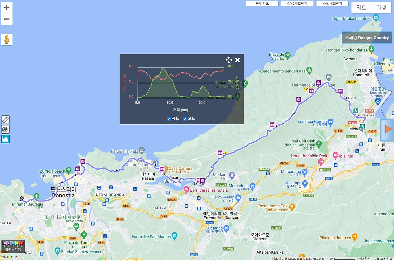 Irun 이룬 ~ San sebastian 싼 쎄바스띠안(도노스티아,donostia) : 28km, 획득고도 893m