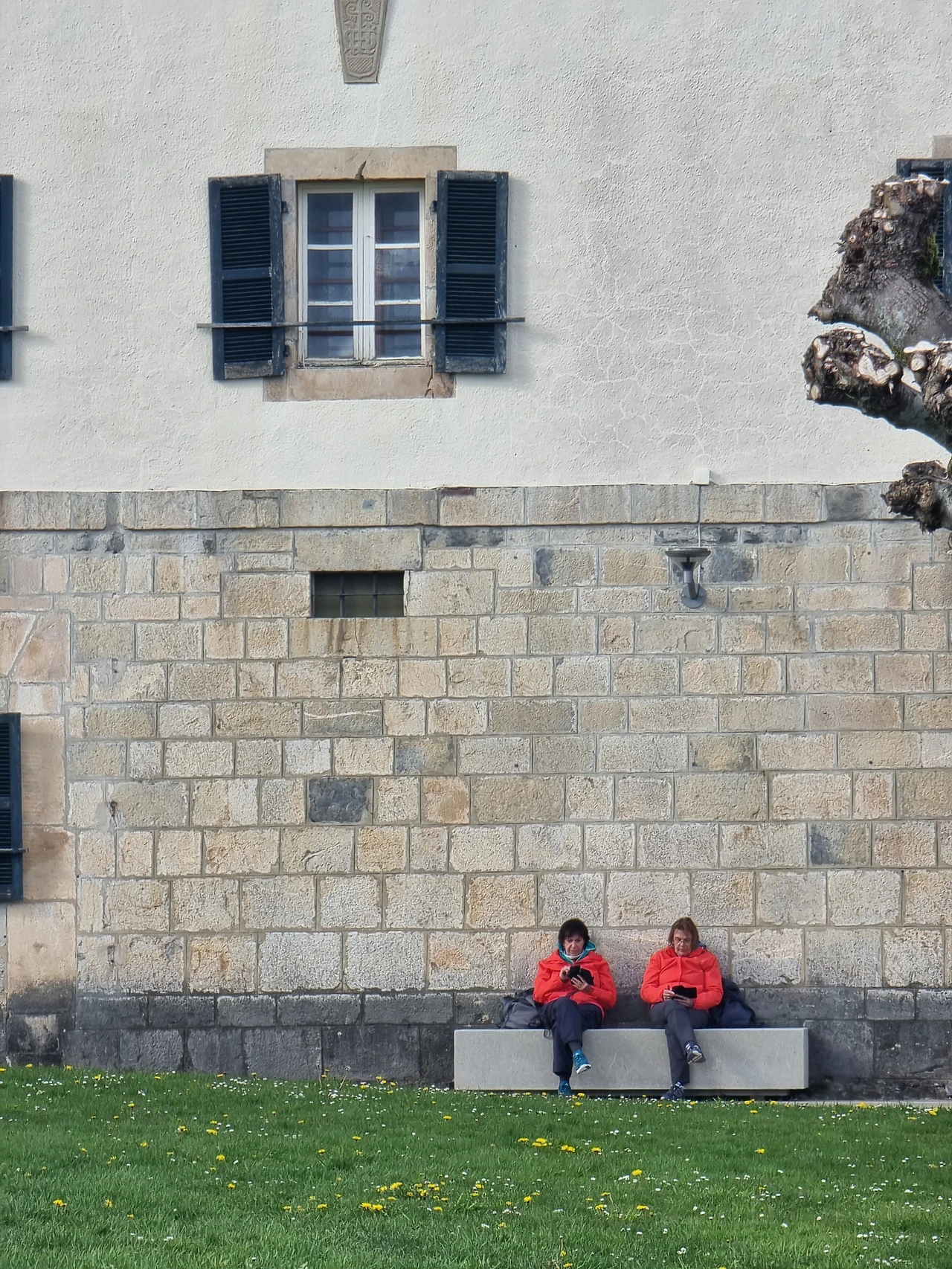 수도원 벽에 가대어 앉은 붉은색 옷의 슨례객이 인상적이었다.
