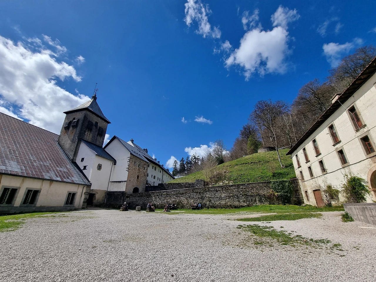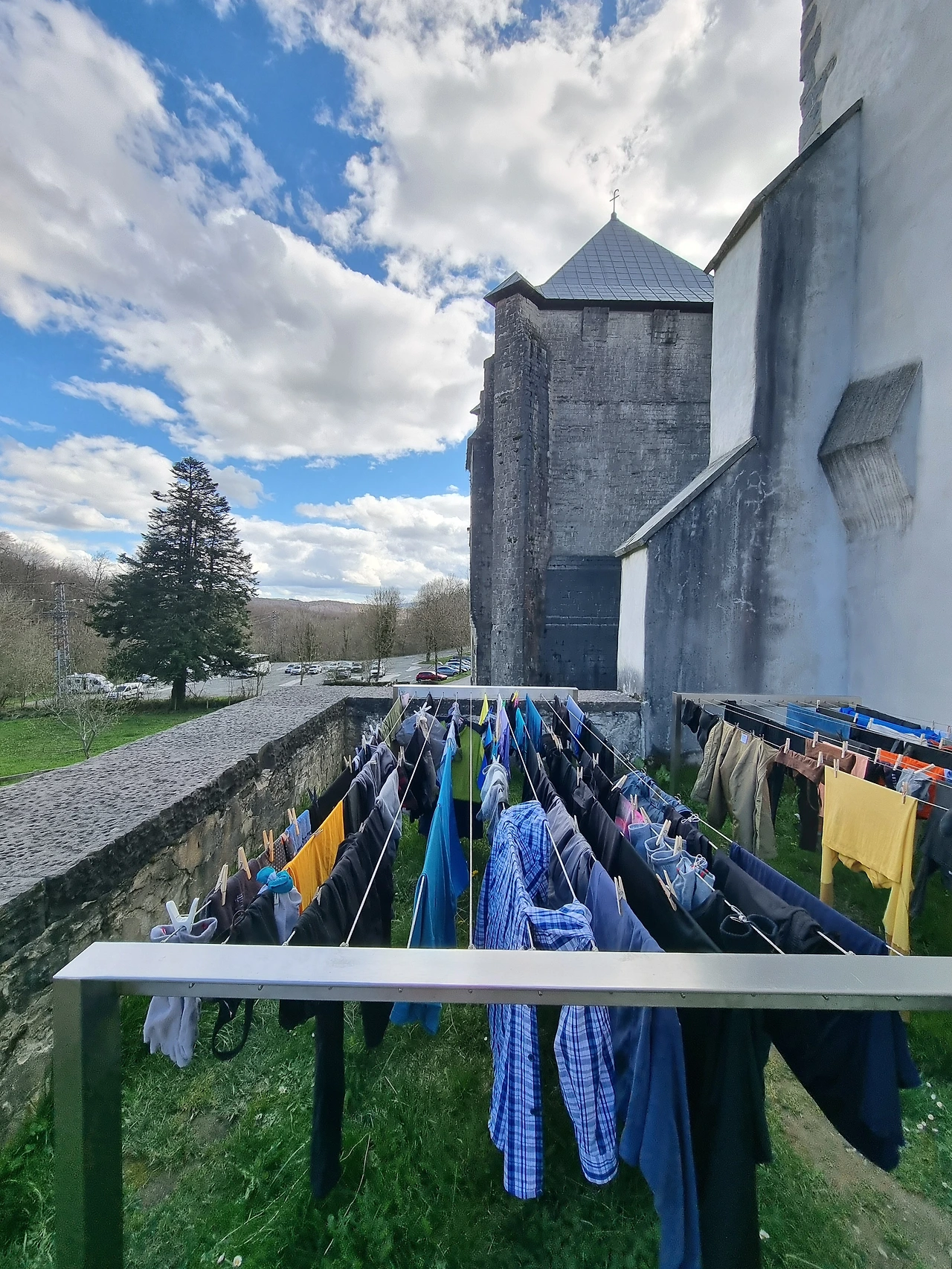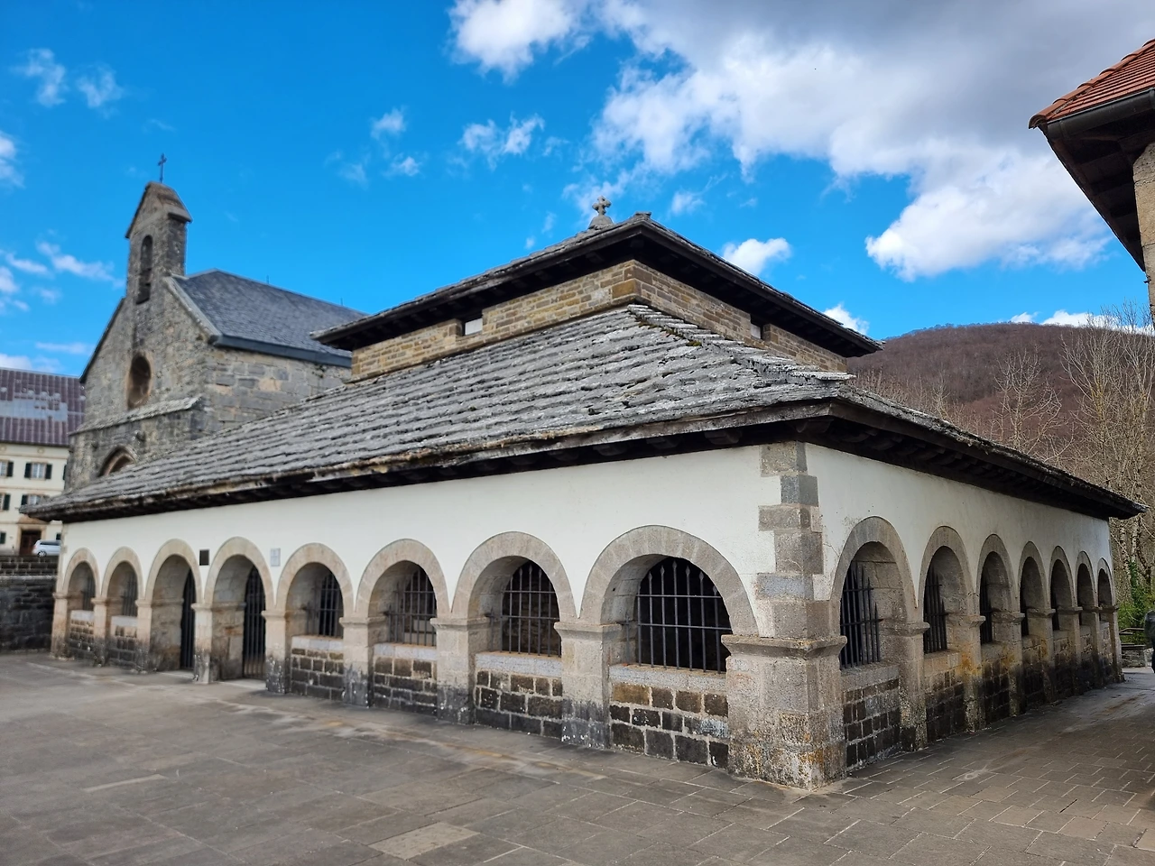 론세스바예스 수도원 성당 알베르게 앞마당