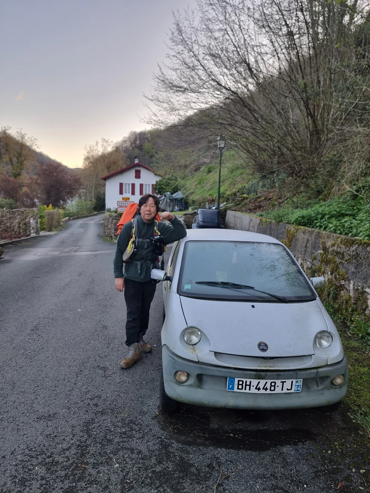 아르기니를 지나 마을 길로 걷는데 매우 작은 그러니까 우리 나라 대표 경차였던 마티즈보다도 훨씬 적은 승용차를 만나 기념사진도 한컷 남겨 본다.