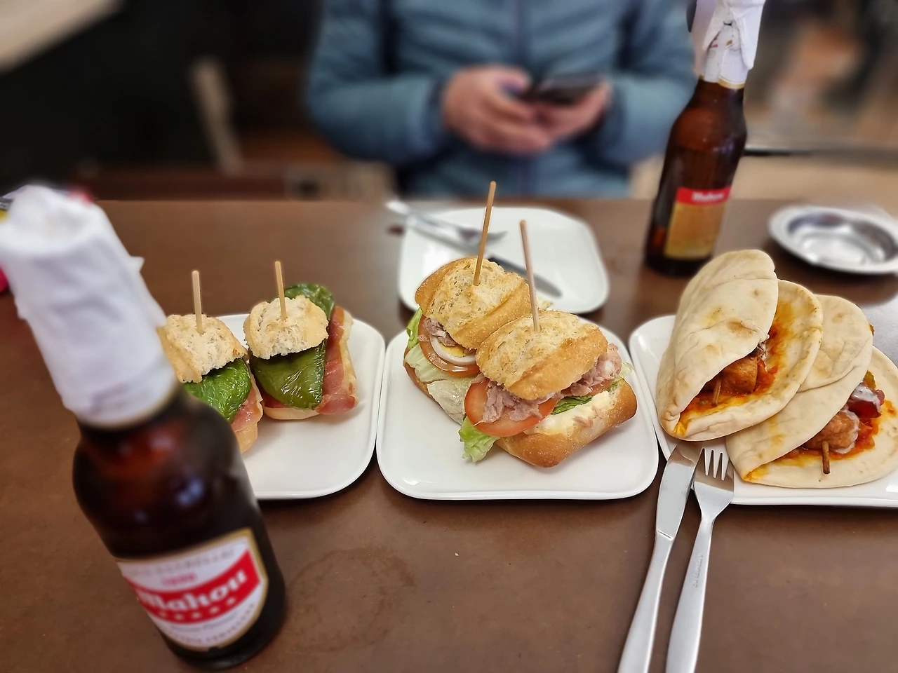 진열된 핀초스가 크기 모양 모두 좋아 보여 식사 대신 맥주와 핀초스 각 3개씩 주문해서 먹는데 토할 뻔했다. 양이 상당하고, 그중 또르띠야에 고기와 야채를 양념해 구운 것은 맛도 그만이었다.