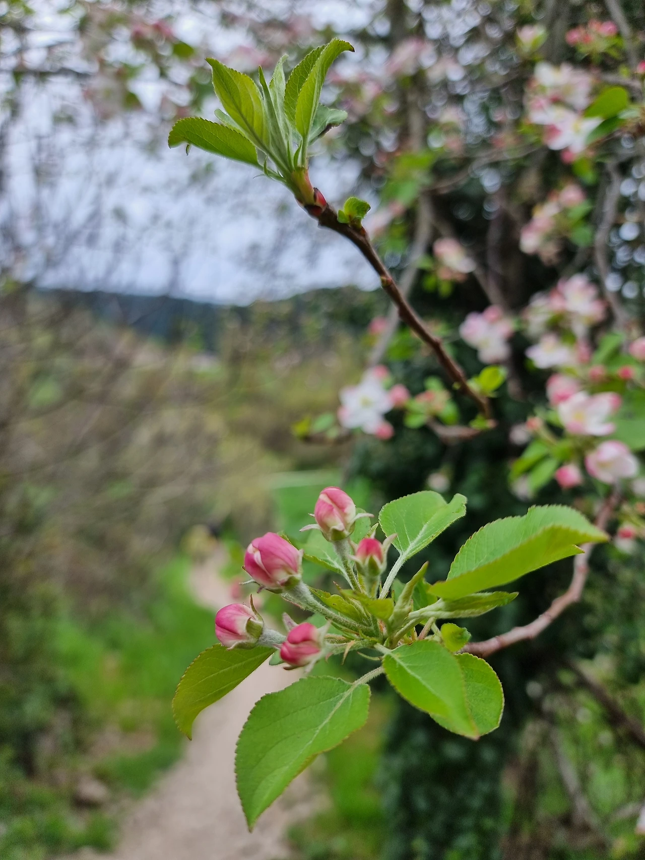 사발디카를 빠져나가는 길섶에 사과꽃이 예쁘다. 사과나무 맞겠지...