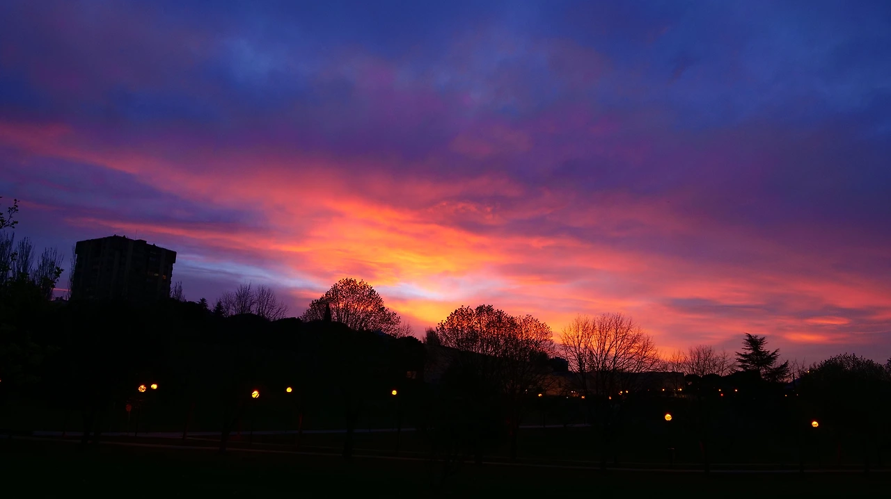나바라 대학 뒤로 동이 터오는 모습