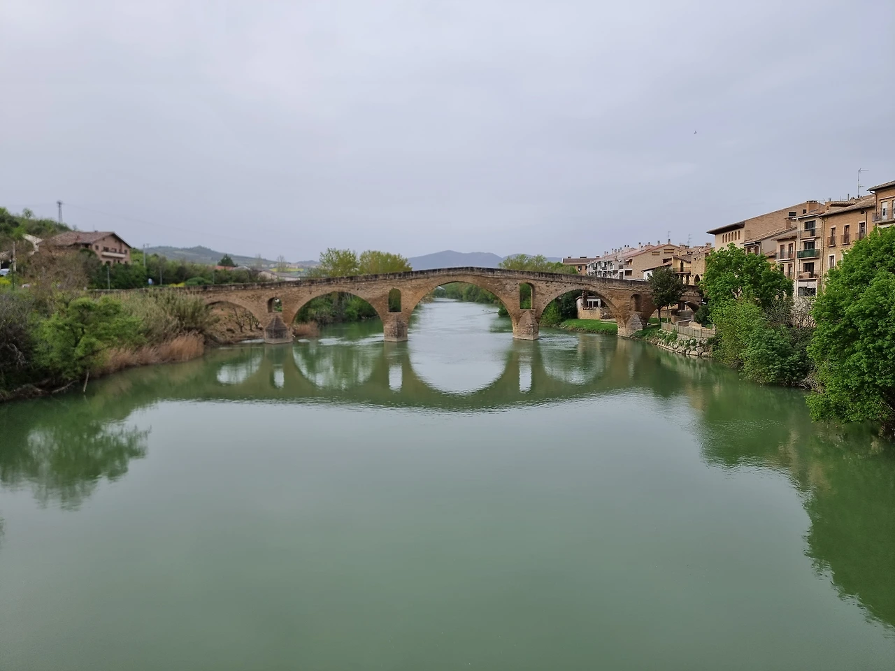 9유로에 침대를 얻고 우선 식사를 위해 파스타 면을 삶아 찬물에 헹구고 비빔면 장을 잘 버무려 점심 겸 저녁 완료. 내일 일요일이라 미리 간식을 사고, Puente la Reina 뿌엔떼 라 레이나,여왕의 다리를 보러 큰 길가의 다리로 나가본다.