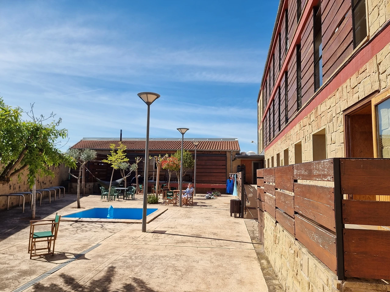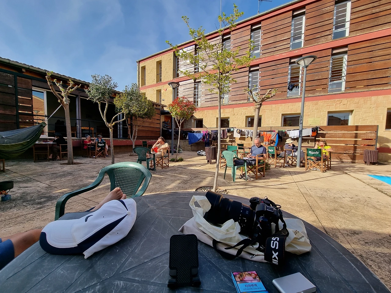 알베르게 마당에서 한가로움을 즐기는 순례자들