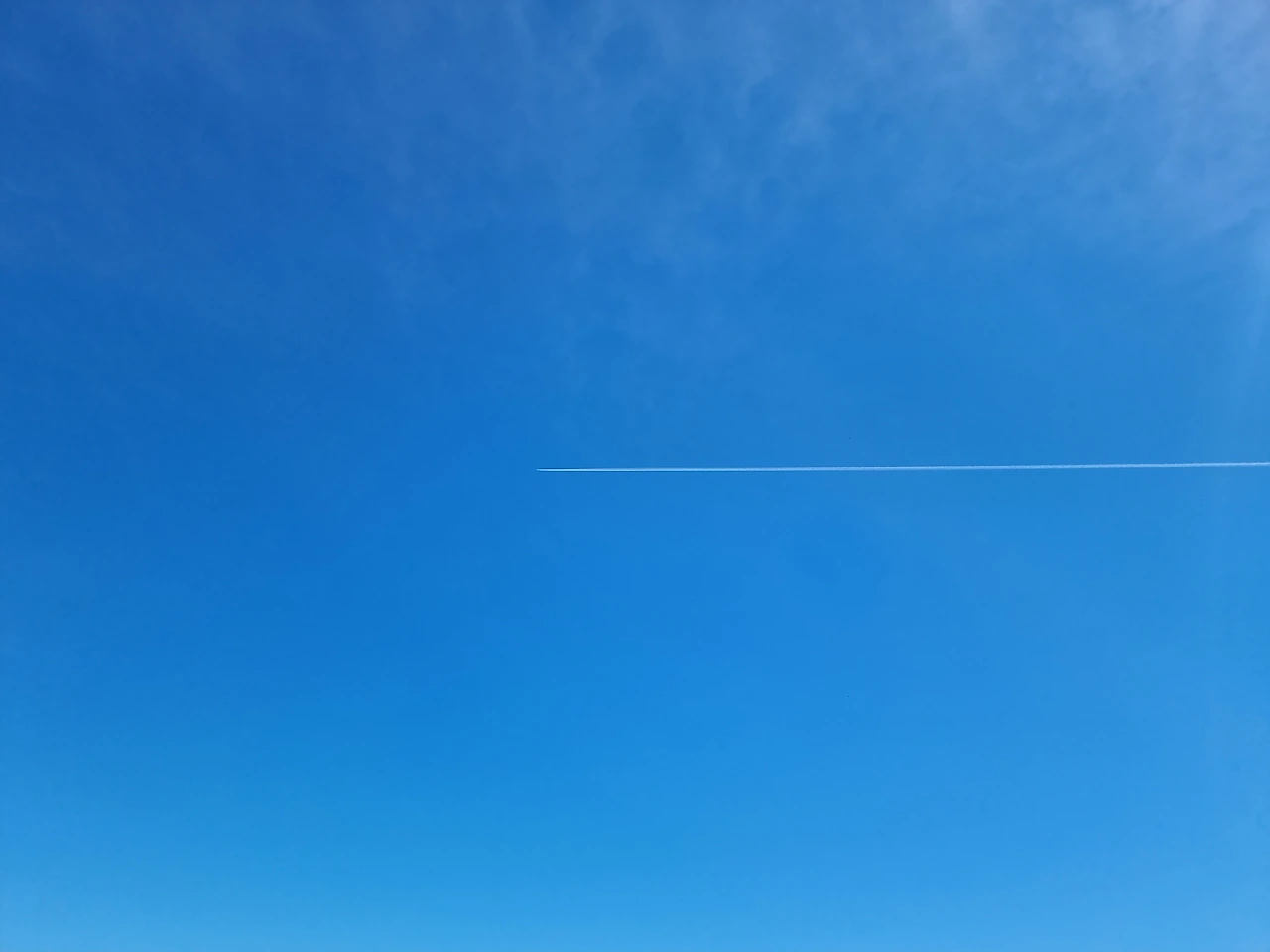 구름이 안 보일 정도로 날씨가 좋은 가운데 파란 하늘로 비행운이 한 줄 생겨 한컷 담아본다.