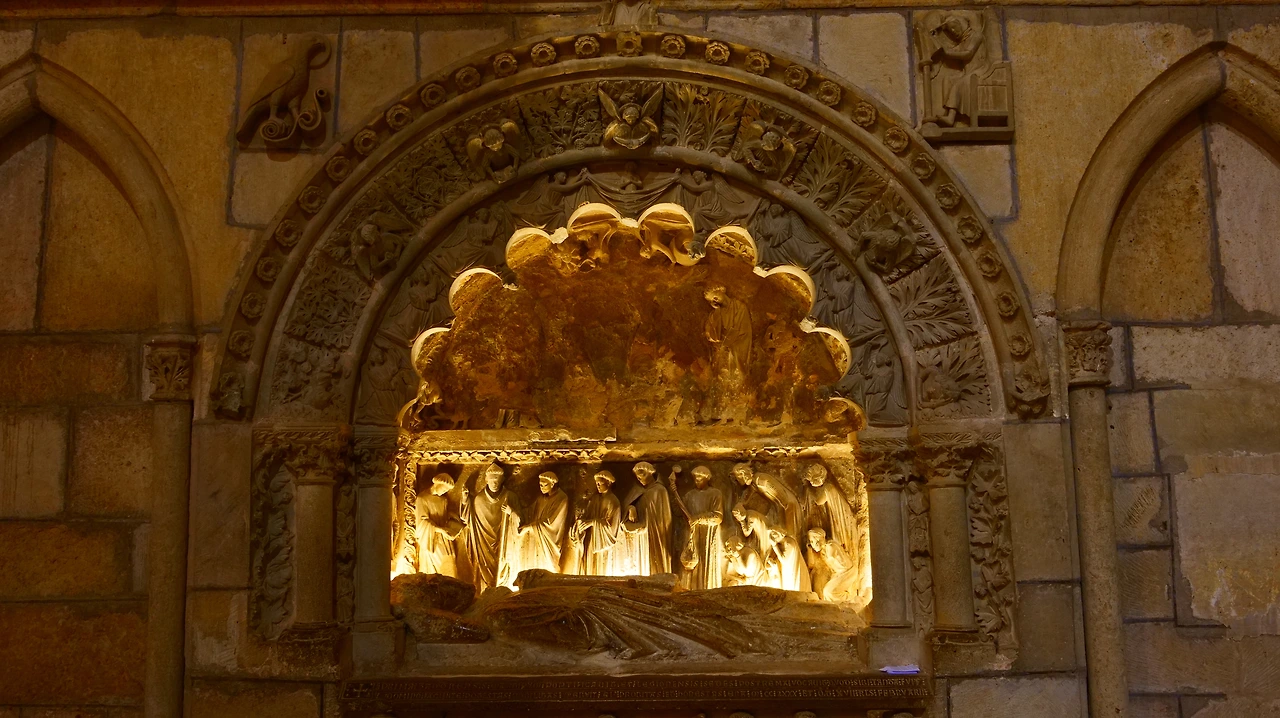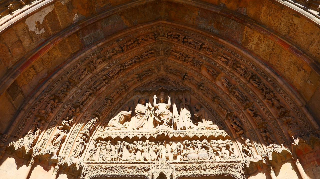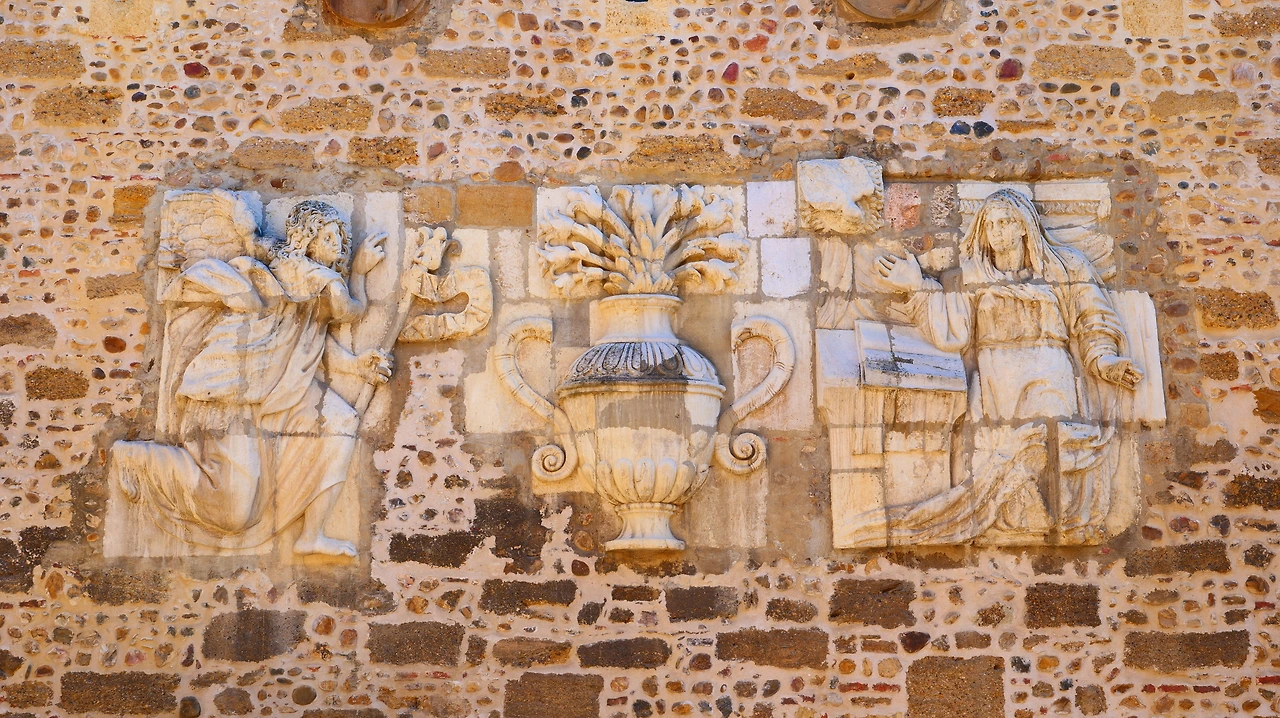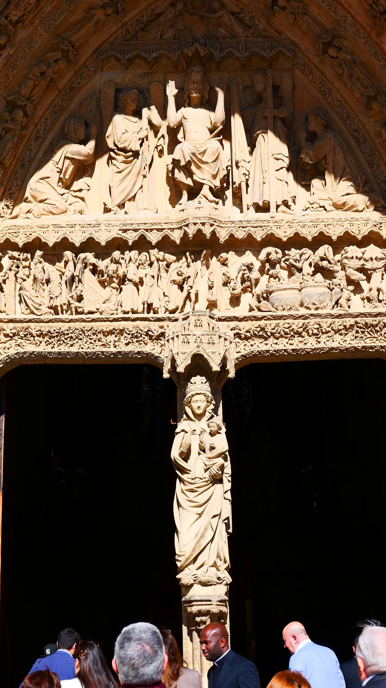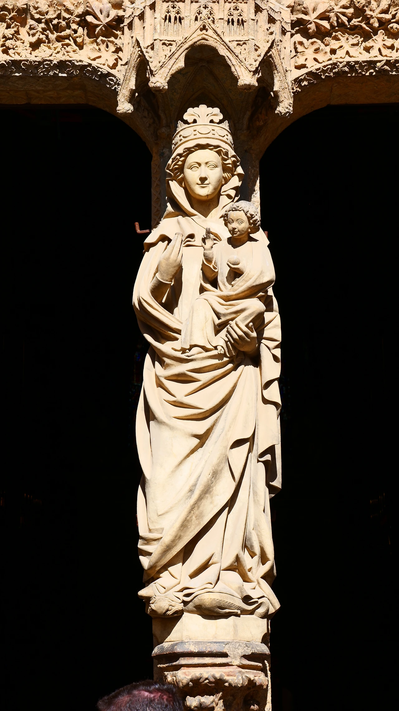 입구 상단의 예수와 입구 중앙의 성모 마리아 조각이 매우 아름답다.