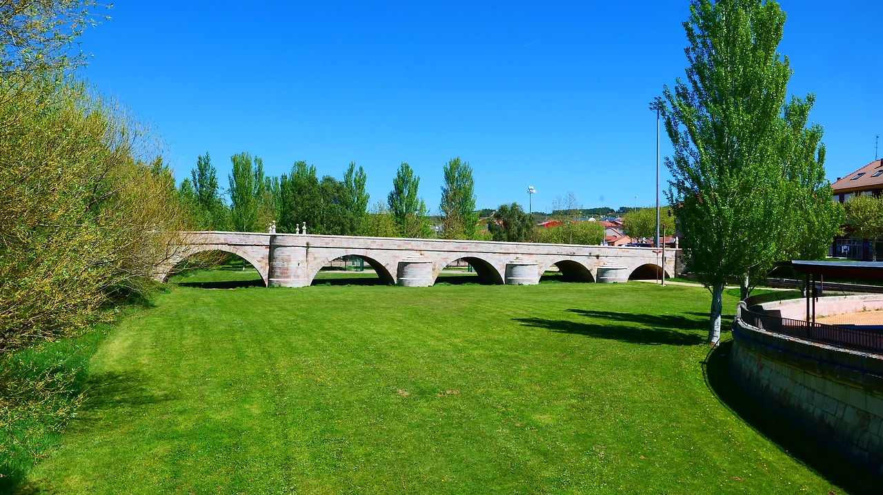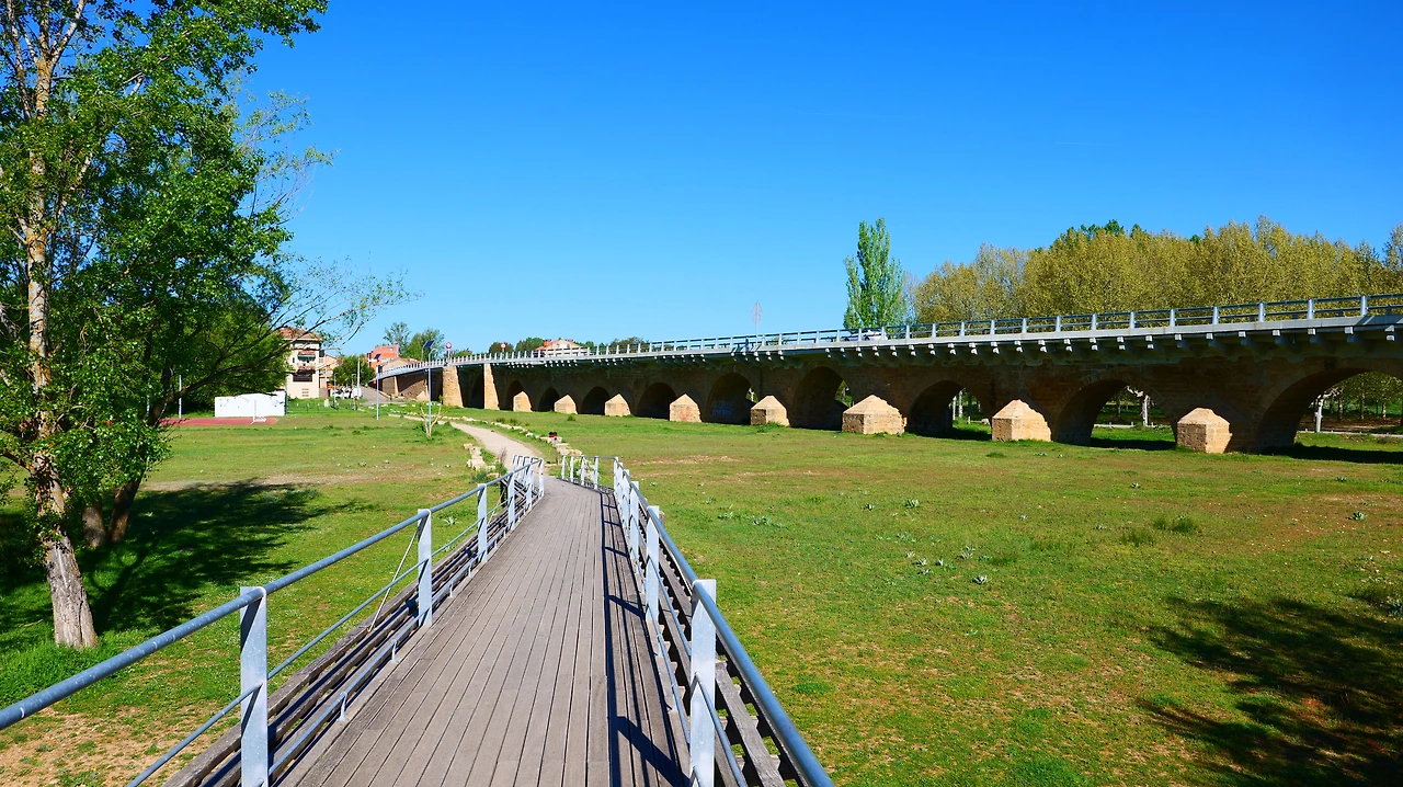 다음 마을인 뿌엔떼 비야렌떼 앞에 뽀르마 강을 건너는 로만 브릿지(Puente Romano sobre el Río Porma)가 자동차용으로만 사용되고 보행자용 다리를 별도로 놓았다. 다리 구경을 하며 미니 축구장에서 퍼질러 앉아 휴식과 흡연을 하고 다시 길을 나선다.
