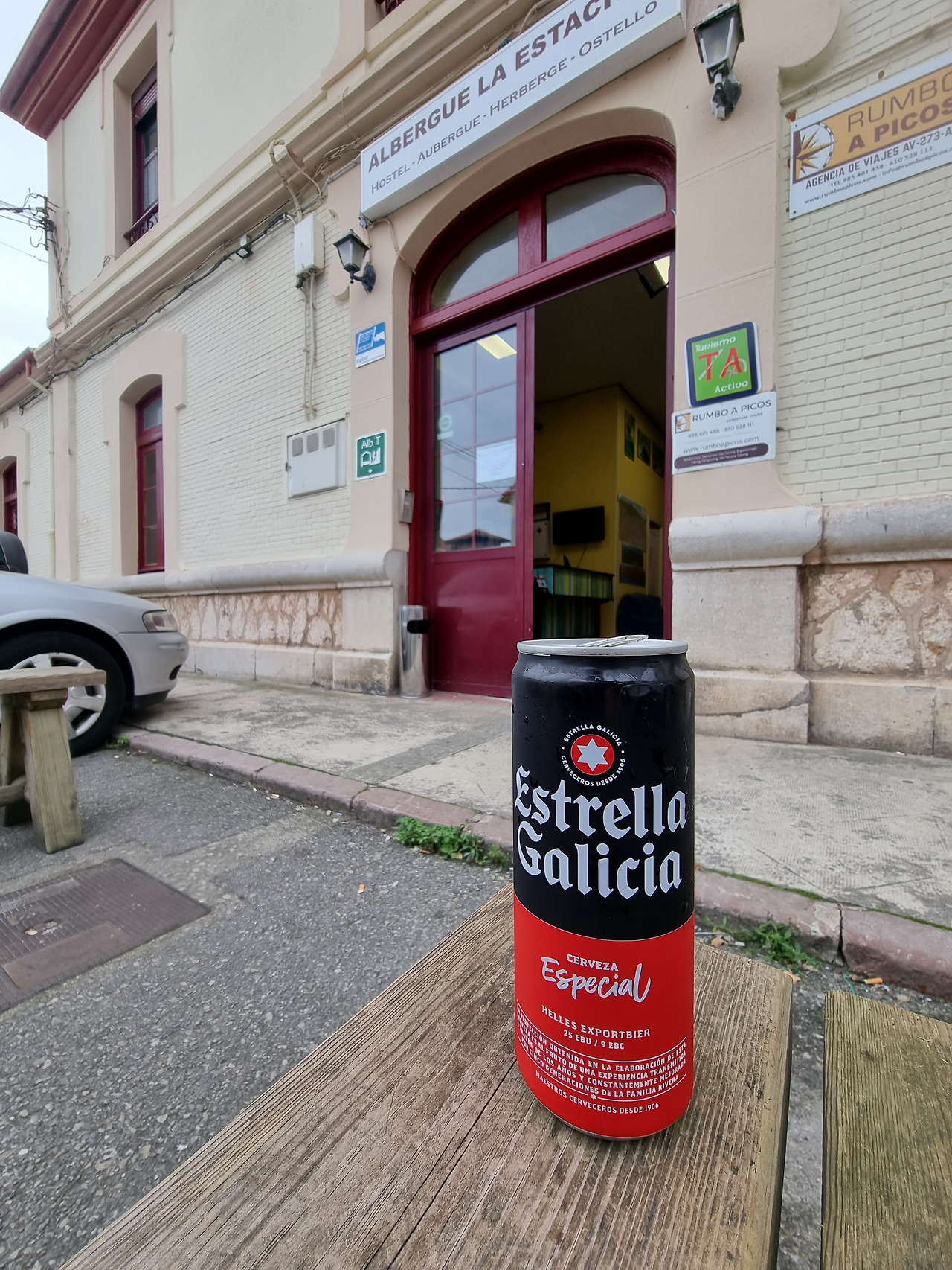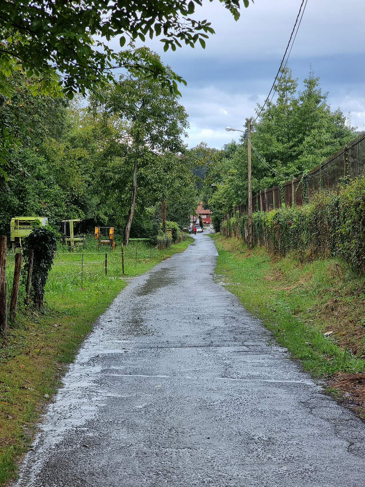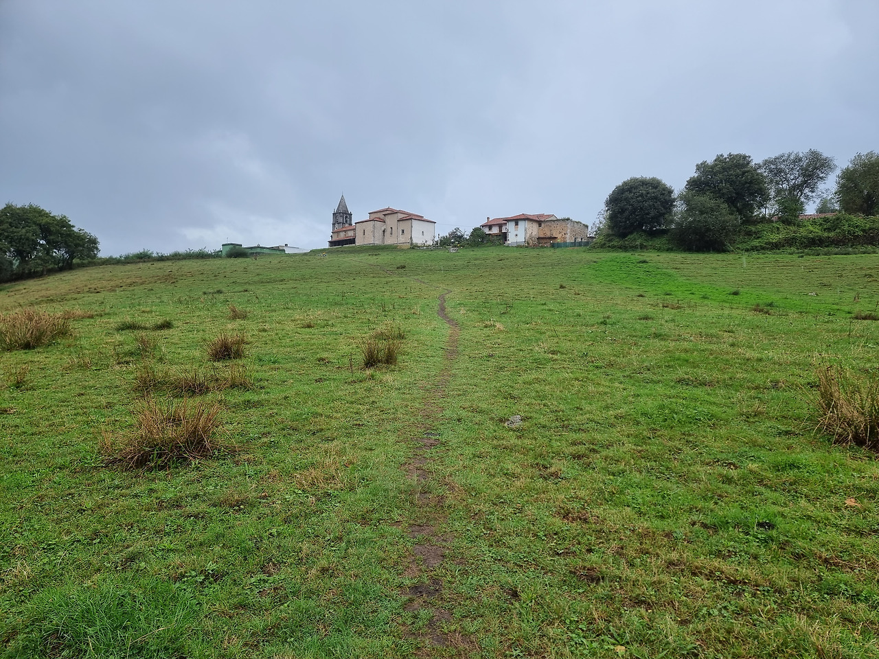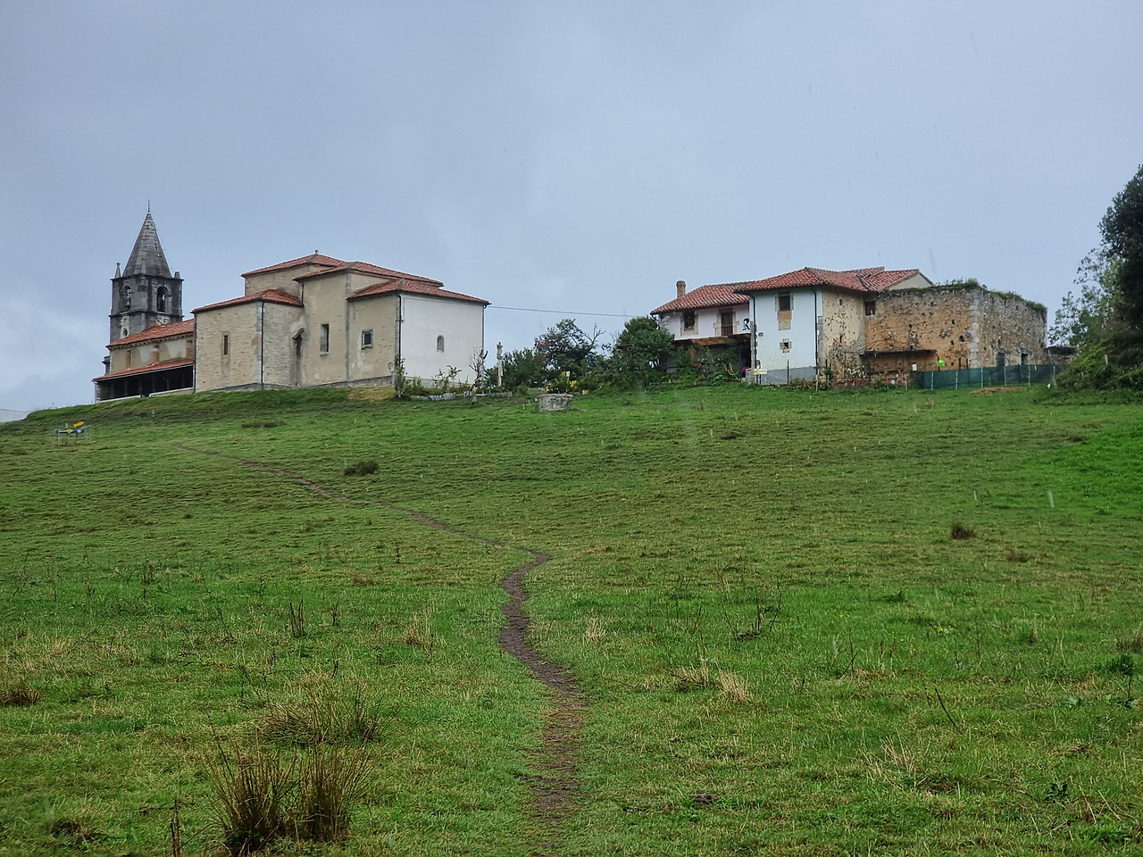 삐녜레스에 알베르게가 있다는 정보는 확인했지만 어디에 붙어있는지 찾지 못하고 마을을 지나는데 언덕으로 이어지는 너른 초지 위에 성당과 건물이 하나 있어 앱을 켜 저게 뭔가 찾아봤다. 알베르게다!!! 아직 오픈 시간 전이긴 하지만 순례자 때문에 생겼을 길을 따라 알베르게에 도착한다. 비는 계속 내리고 아직 오픈전인 알베르게 처마 밑에 앉아 오스삐딸레로를 기다린다.