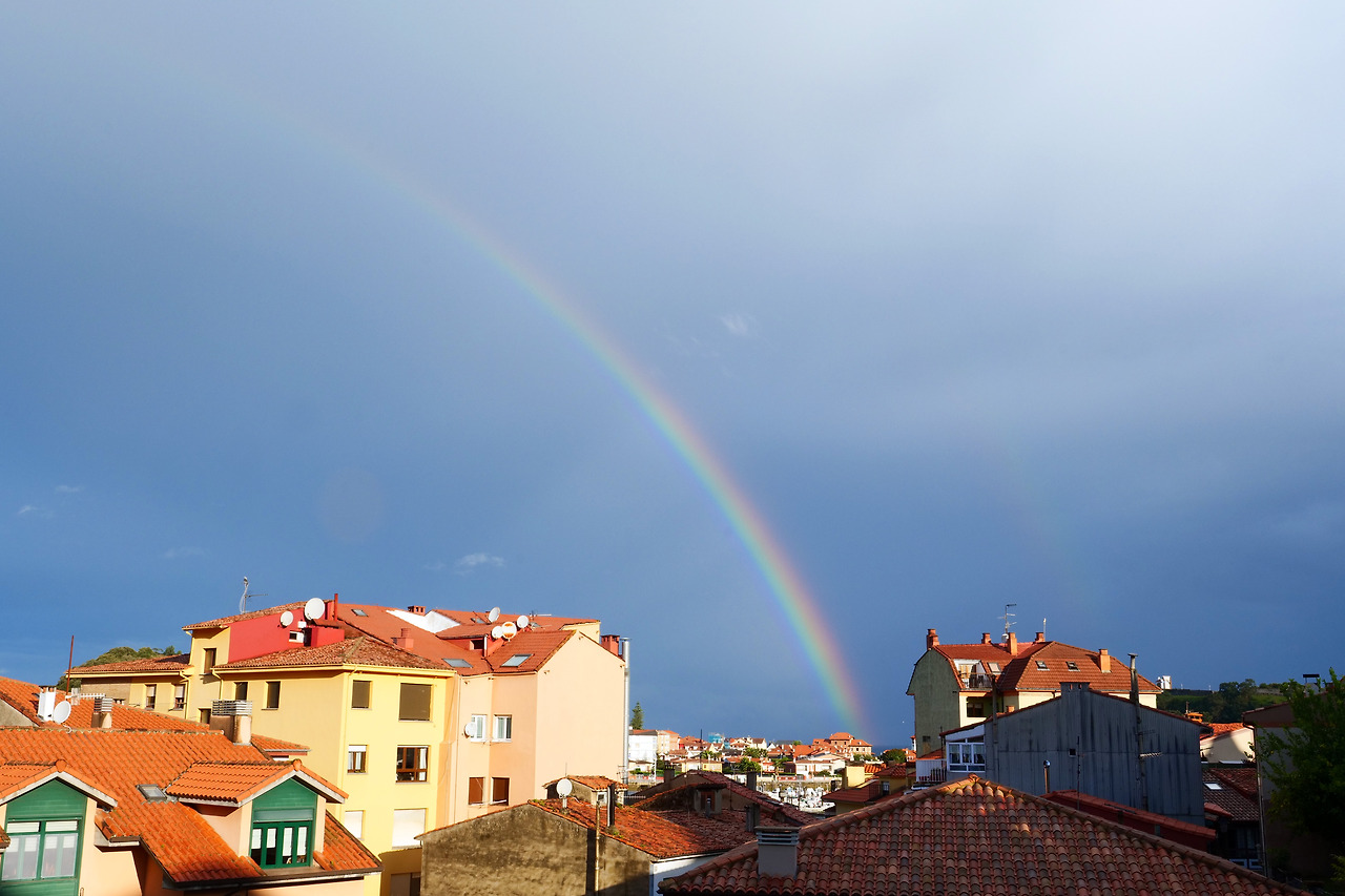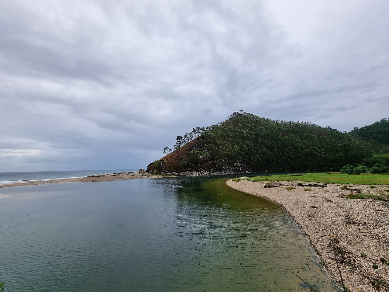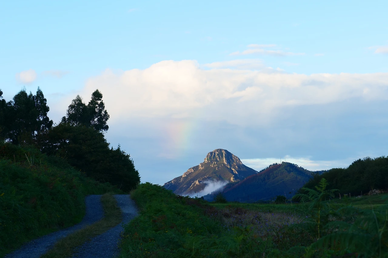 전반적으로 맑다고 생각했는데, 리바데세야 들어가기 전 다시 비가 뿌린다. 우비를 입었다 벗었다, 카메라를 집어 넣었다 빼기를 반복한다. 아 성가시다. 이놈의 비... 9월에 뭔 비가 이리 자주 내리나. 우기도 아니고 갈리시아도 아닌데... 불평을 하며 걷는데 리바데세야 입구에 들어서자 나를 반기는 건 아니겠지만 선명한 무지개가 하늘을 가른다.