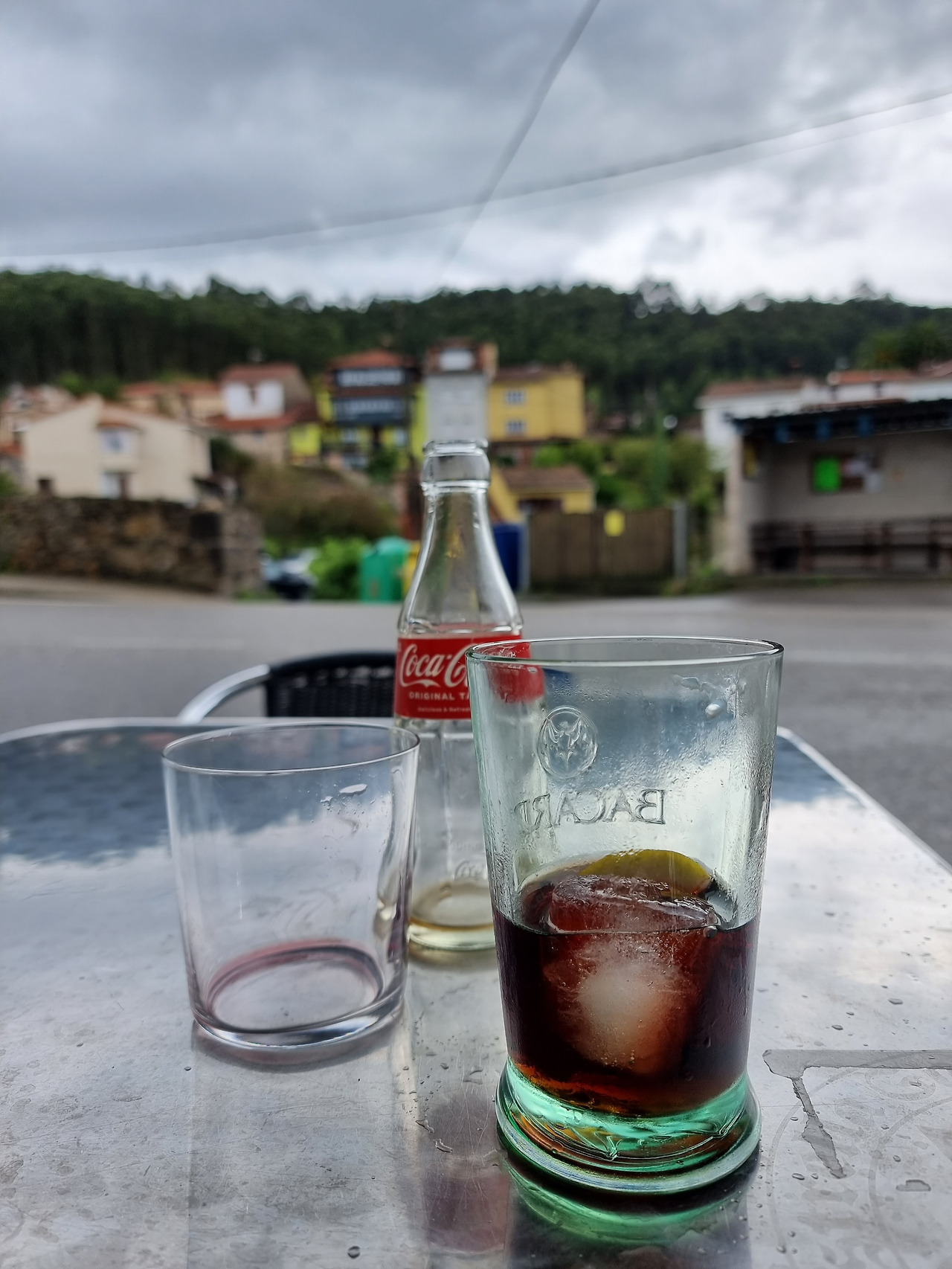 리바데세야를 지나 잠시 바다와 헤어졌던 길은, 다시 멀리 바다를 둔 마을 쪽으로 이어진다. 주택만 있는 작은 마을을 서너 개 지난 후 Berbes라는 동네에 바르 Casa melin이 있어 또 잠시 쉬어 가는데, 이번에는 포도주 한잔과 콜라를 한병 시켜 섞어 마셔 본다. 보통을 깔리모초를 시켜야겠지만 습관적으로 콜라를 시킨 후 갑자기 깔리모초를 만들어 먹어봐야겠다는 생각에 레드와인도 한잔 시켰다. 와인과 콜라를 1:1 비율로 섞어 마시는걸 Kalimitxo 깔리모초라고 하는데 젊은이들이 주로 마신다고 한다. 마셔본바 두 번 마실 필요는 없을 것 같다.