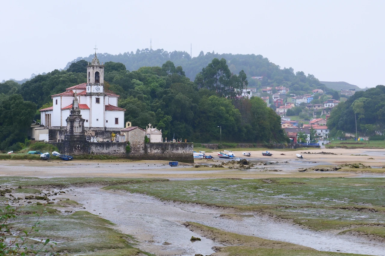 바다와 멀리 떨어지지 않은 비 내리는 차도를 따라가는 길은 'Barro'라는 마을을 지난다. 바다와 연결된 바로강 (Rio Barro) 하구의 넓은 간조의 모래사장과 만나고 그 뒤로 마을이 펼쳐지는데 뭐랄까 비 때문에 더 우울한 느낌이 드는 성당(공동묘지)과 마을이 한눈에 들어온다. 아마 맑은 날이었다면 또 완전히 다른 느낌 아니었을까? 썰물 탓에 넓은 모래사장이 드러나 좀 너저분한 느낌이었지만 날이 화창하고 밀물 때였다면 물에 떠있는 듯한 모습의 아름다운 성당이었을 텐데 하는 아쉬움이 든다. 아름다운 풍경이지만 당장은 굵어진 빗줄기 때문에 마음의 여유가 생기지 않는다.