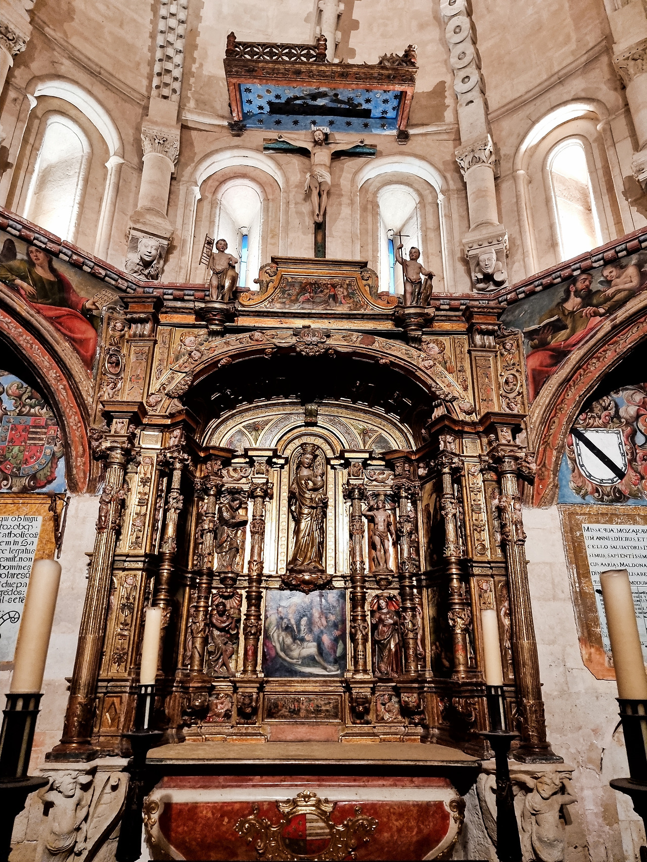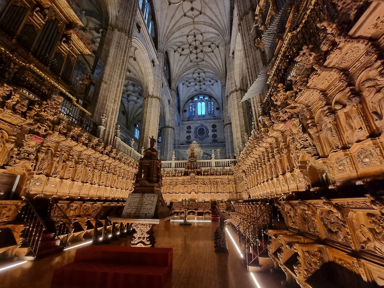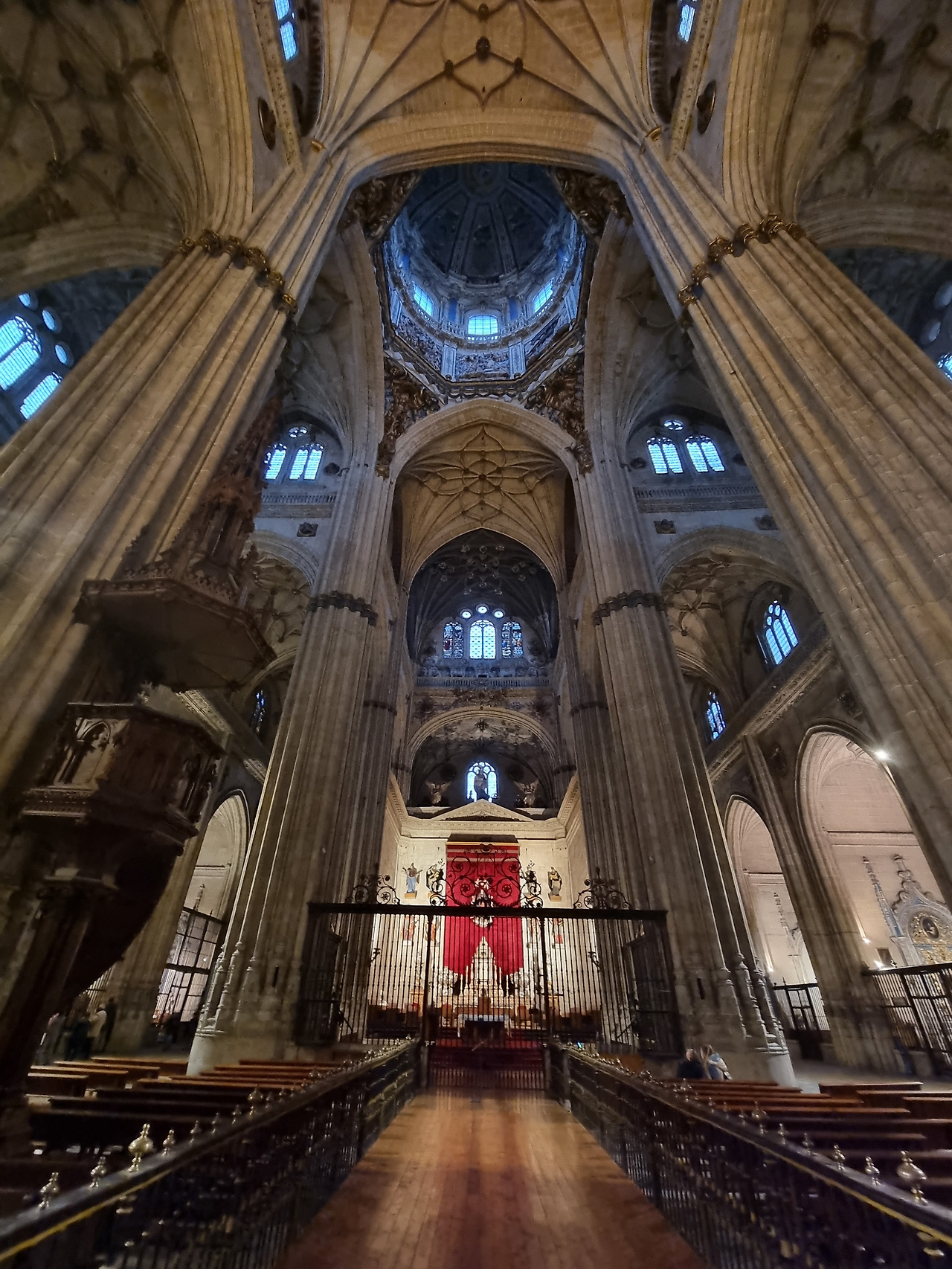 대성당 관람을 위해 다시 나와서 시내 전망을 볼 수 있는 종탑(Scala Coeli 박물관)에 3.75유로 입장권을 사서 올라 시내 구경을 합니다. 살라만까 시내 전부를 볼 수 있는 멋진 장소입니다. 종탑까지 걸어 올라가며 박물관 관람도 할 수 있습니다. 까떼드랄은 8유론데 순례자 할인받아 4유로에 입장 합니다. 우와! 본성당 안에는 양옆으로 4개씩 8개의 카피야(내부의 작은 기도실 같은 기도공간?)이 있고 옆에 소성당이 따로 있고, 또 다른 카피야가 출구 쪽으로 이어집니다.