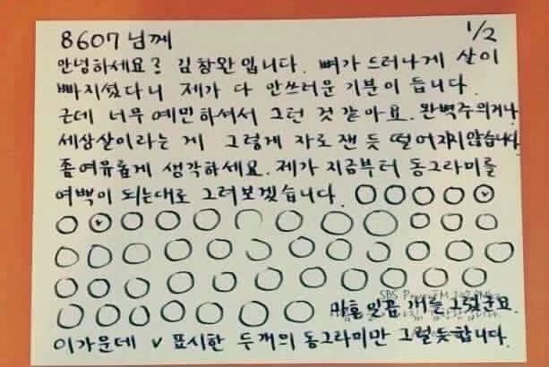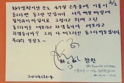 가수 김창완이 라디오에서 쪽지로 청취자에게 상담을 해준 내용이다.
