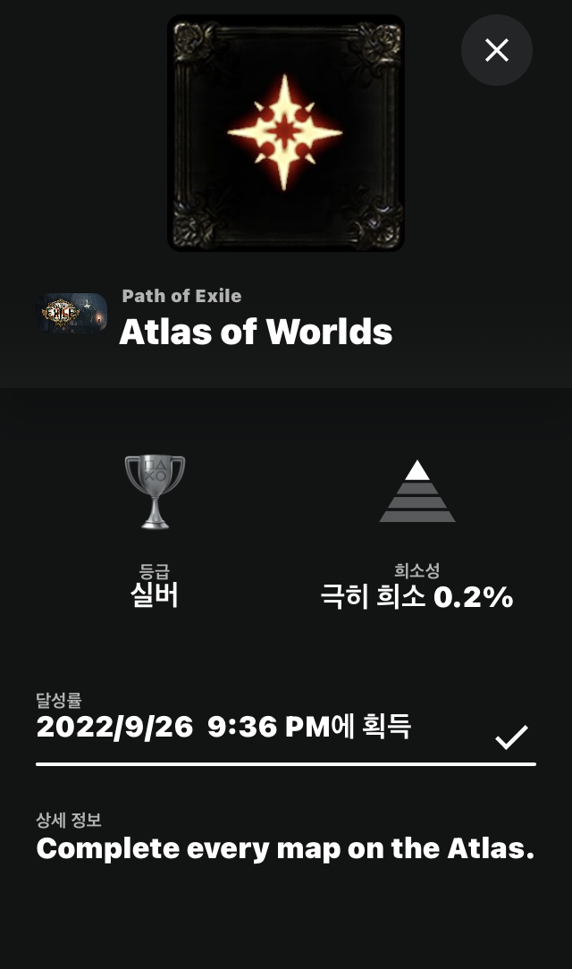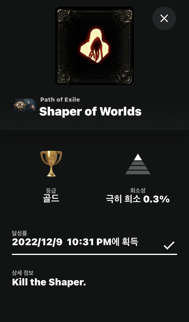 물론 0.1% 초고수들이 보기에는 '네가 못 하는 거야'라고 할 수도 있겠지만, 적어도 상위 1% 이상에는 포함될 정도로 했었다. 지금까지 플레이스테이션으로 POE를 했던 게임 유저의 0.2~0.3%밖에 달성하지 못한 트로피까지는 해냈었다. 그러나 결국 클리어를 코앞에 두고 넘을 수 없을 것 같은 한계를 느껴 포기했다.
