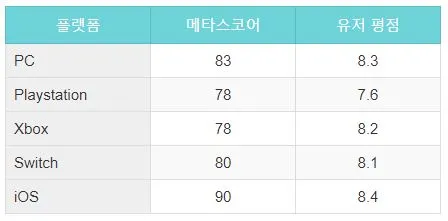 메타크리틱 평가 :