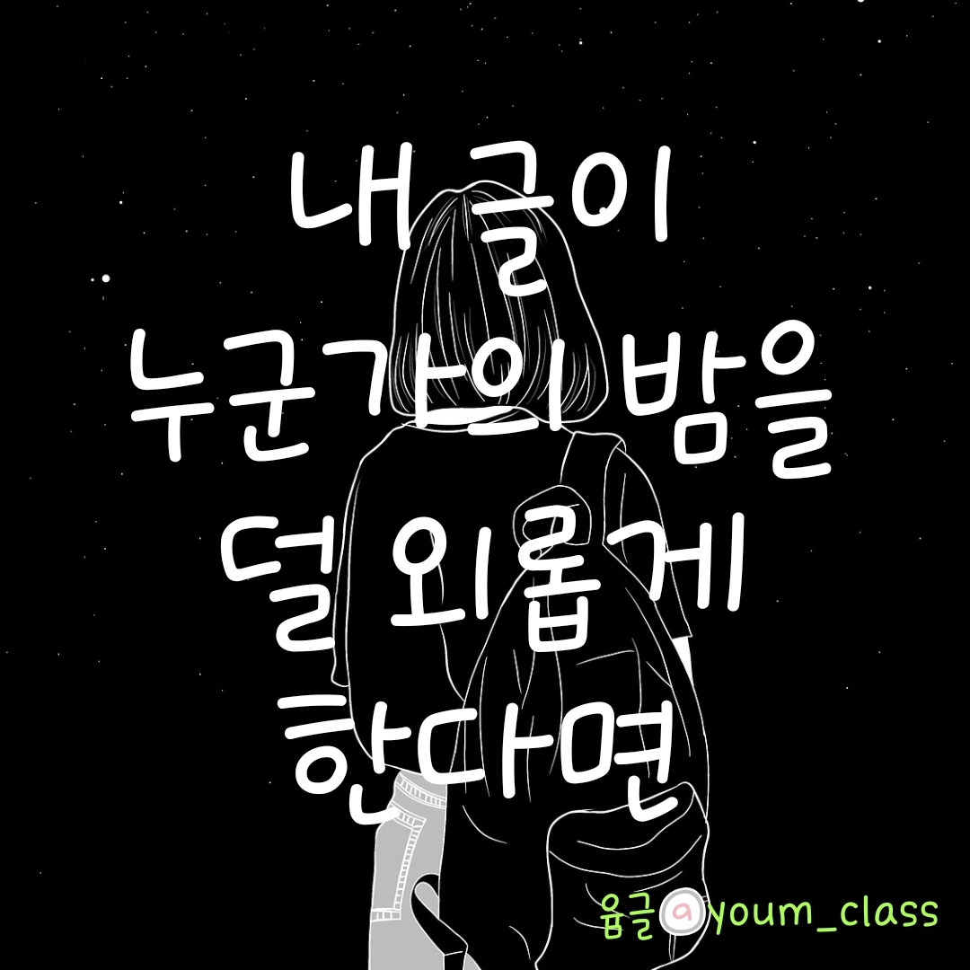 내가 쓴 글이 누군가의 밤을 덜 외롭게 만들어주길 바란다. 눈물 흘리는 누군가가 내 문장에서 위로를 얻기를.