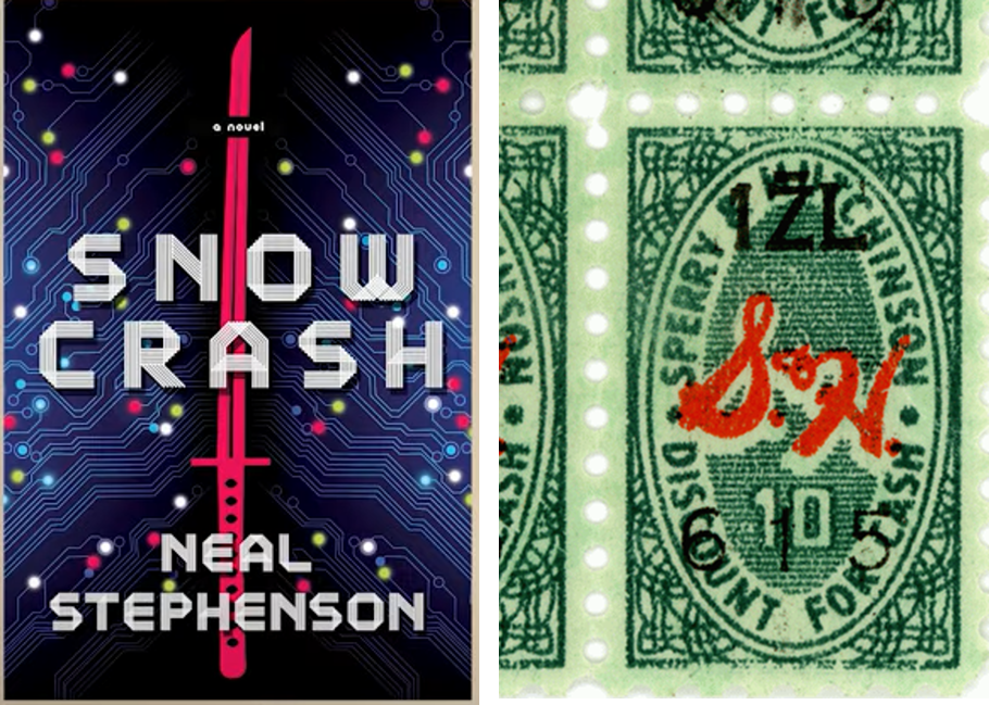 1992년, 닐 스티븐슨의 < 스노우크래쉬 Snow Crash>에서 메타버스 용어가 처음 사용(좌). 명시적 게이미피케이션의 시초는 < S&H 그린스탬프>는 1896년 사용