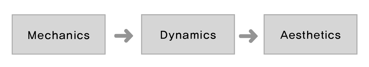 연구자들은 ‘규칙 → 시스템 → 재미’의 과정을 기법(Mechanics), 역학(Dynamics), 미학(Aesthetics)으로 등치 하였습니다. 첫 글자를 딴 MDA는 게임의 구성요소를 이해함에 있어 유용합니다. 또한 이 구성요소들은 게임제작의 가이드라인으로 활용되기에, 인터렉티브 IP창작에도 추천할 만합니다.