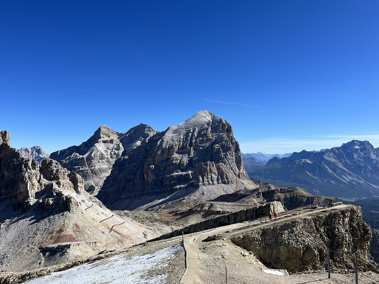 돌로미티 동부에 있는 한 산의 이름이다. 그곳에는 정상에 이르기까지 산악자전거를 타며 오르는 분도 보였고, 두 발로 트래킹 하며 오르는 분도 꽤나 보였다. 그중 우리는 놀랍게도(?) 자전거도 두 발도 아닌, 케이블카를 타고 올라갔다.