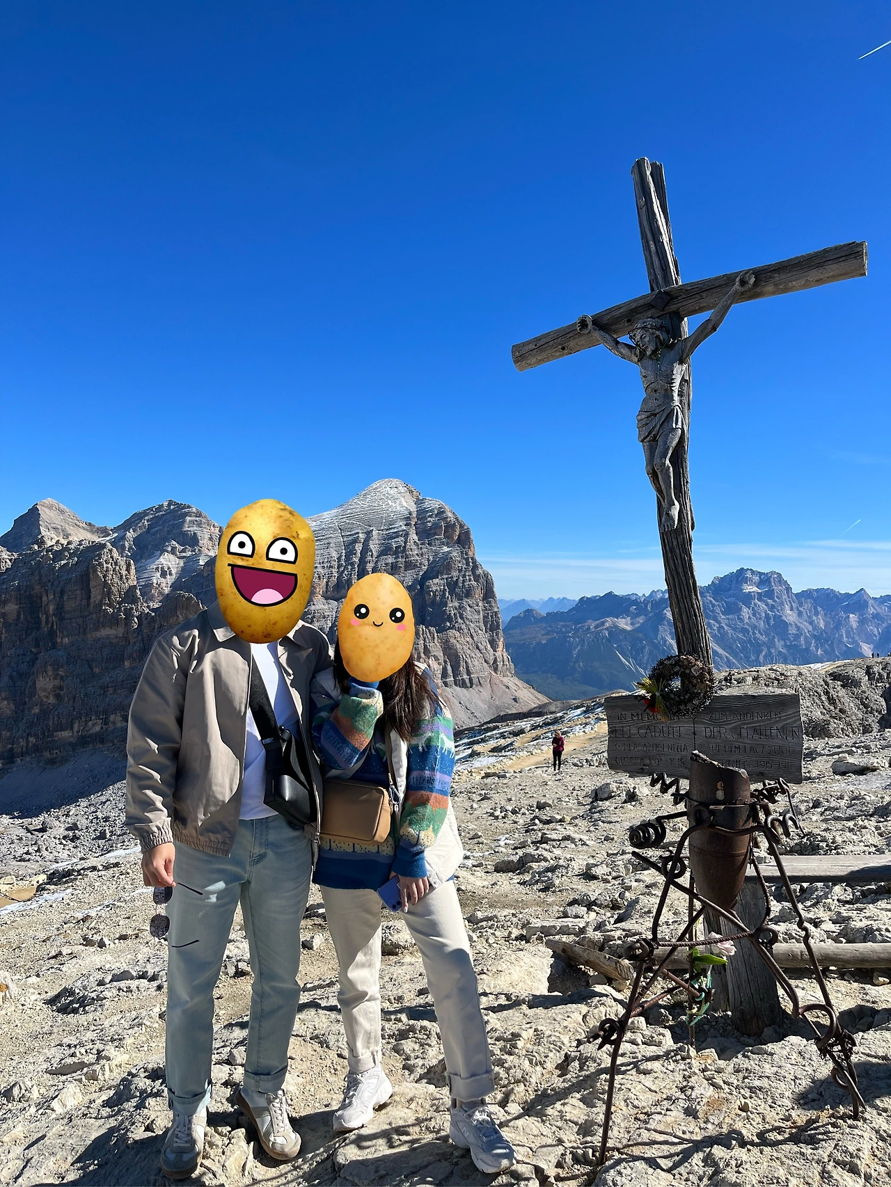정상 부근에 가니 참전자들을 기리기 위한 작은 십자가가 있었다. 그 주위로는 돌로미티의 아름다운 경관을 배경 삼아, 십자가와 사진을 찍으려는 이들이 많았고 나와 콩자씨 또한 기념사진을 멋지게 남길 수 있었다.