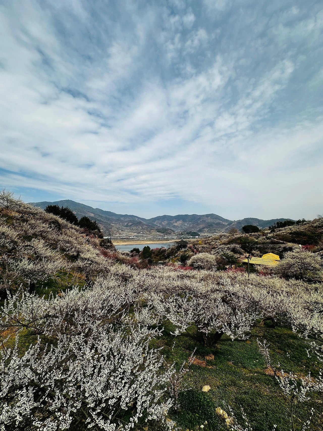 산 허리마다 하얀 매화꽃을 지천으로 품었다.