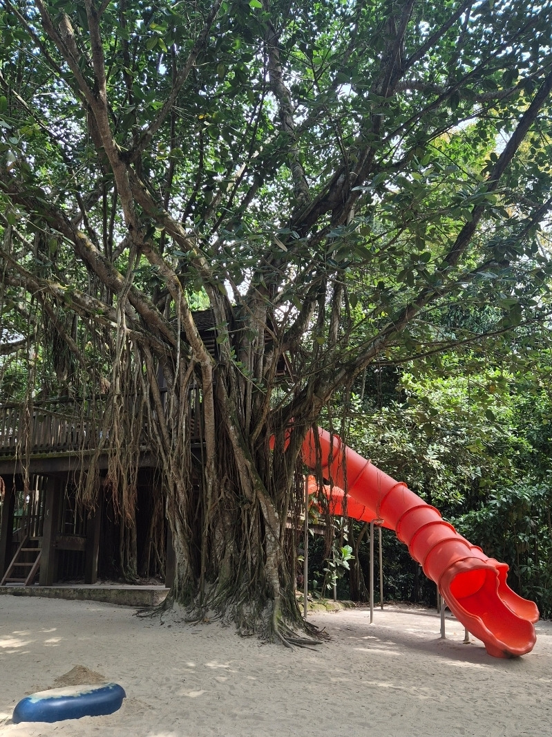 아이들은 왜 이렇게 물놀이를 좋아하는 걸까? 너무나 신나게 놀고, 잠시 문화 충격을 받은 후 또 놀이터로 간다. 숲 속 놀이터답게 나무로 된 미끄럼틀과 집라인 같은 각종 어린이 놀이기구를 탔다. 느릿느릿 왕도마뱀과 닭 구경도 실컷 했다.