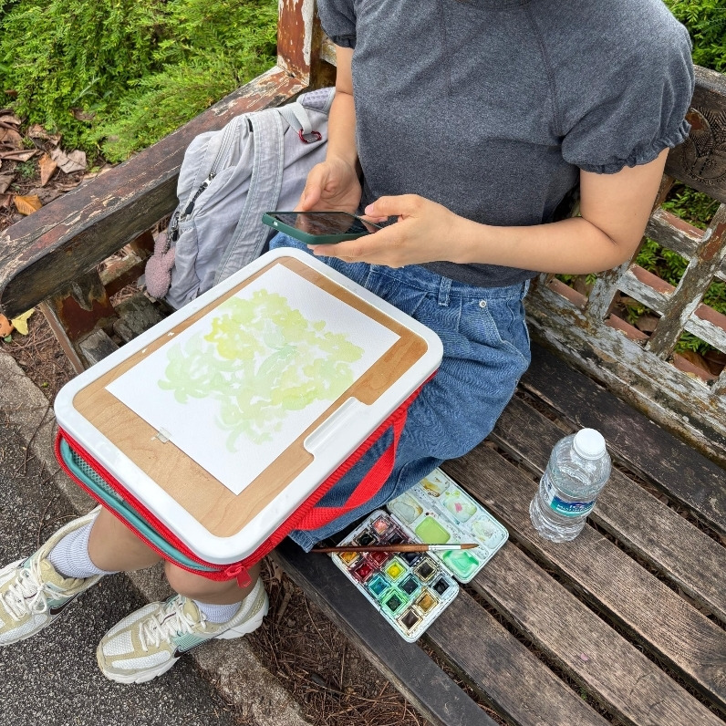 새소리를 들으며 행복하게 호수에 앉아서 그림을 그리는데 어떤 외국인이 오기에 말 걸지 마라 말 걸지 마라 기도했건만... 할아버지께서 말을 거셨다... 난 정말 모르는 사람이랑 스몰토크 하는 걸 너무 싫어하는데... 나한테 본인도 그림을 그린다면서 친구 하자고, 사진도 같이 찍고... 극 내향형 인간인 나에게는 고맙고도 괴로웠던 시간이었으나 할 건 다했다고 한다. ㅋㅋㅋ