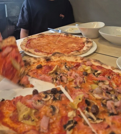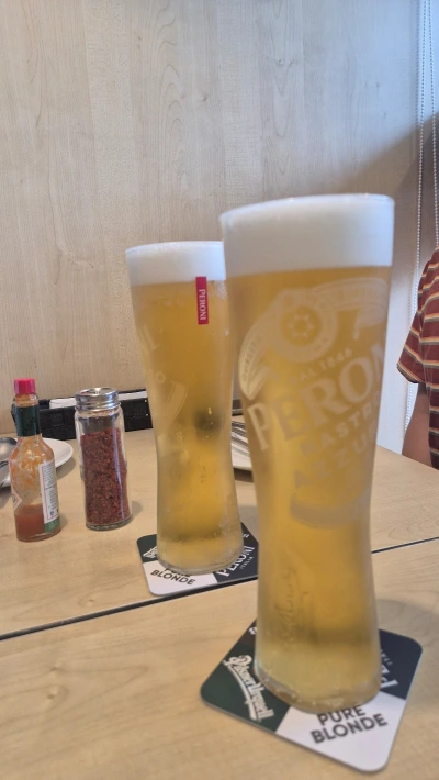 이층 버스를 타고 집으로 와서 수영타임을 갖은 후 모두 함께 저녁을 먹으러 동네 피자집에 갔다. 동네 이지만 가격은 너무 사악한 이태리 화덕피자집! 그러나 생맥만은 정말 최고였다.