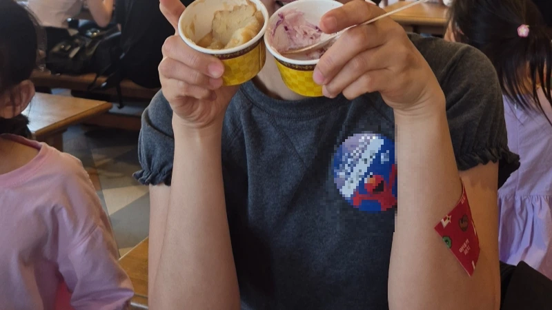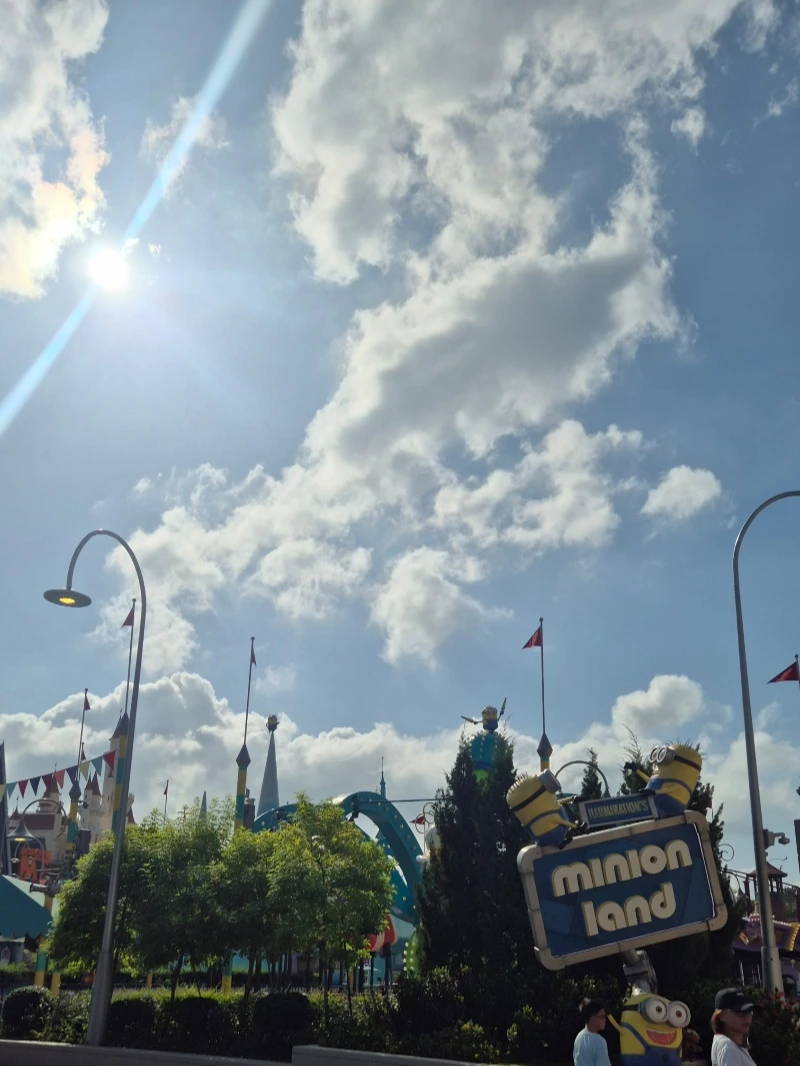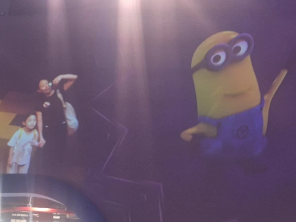 그리고 미니언즈로 갔는데 미니언즈 동네 너무 귀엽다! 청소년들은 이미 탑승 후 미멈인지 뭔지를 타러 가고, 나와 딸만 미니언즈를 타는데 너무너무너무!! 재미있었다. 오픈런 한 덕에 기다리지 않고 탑승했고 바나나 향이 마음 깊이 남았다고 한다. 끝나고 언니를 만나서 같이 슈렉 영화를 보러 갔다. 3D 영화를 보고 나와서 피오니 공주님이 보이기에 인사했더니 생일 축하도 해준다. 공주님의 축하라니 영광이옵니다~!
