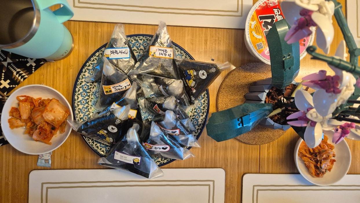 싱가포르에서 마지막으로 먹고싶은게 삼각김밥이라는 조카의 이야기를 들은 언니가 삼각김밥을 잔뜩 해서, 먹고 비행기에서 먹을 김밥까지 싸갔다. 김치사발면과 삼각김밥을 야무지게 먹고 언니와 둘이 공원을 좀 걸었다. 아름다운 석양이었다.
