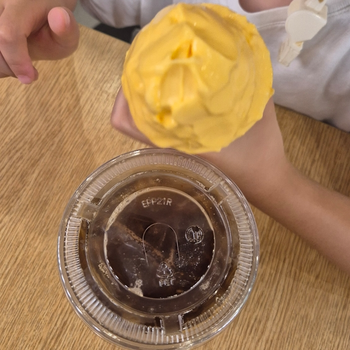 한참 놀다가 신메뉴 텐져린 아이스크림이 나왔다기에 맥도날드로 갔다. 생각보다 맛은 없어서 딸이 좀 남겼고, 나는 아이스 아메리카노를 마셨다.