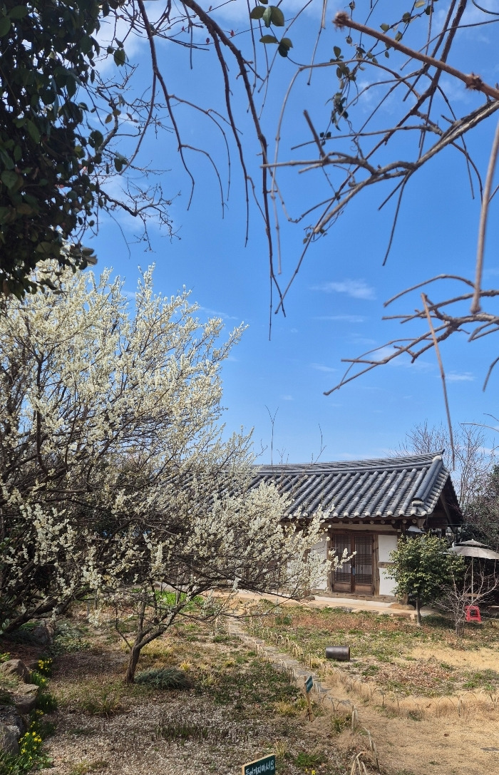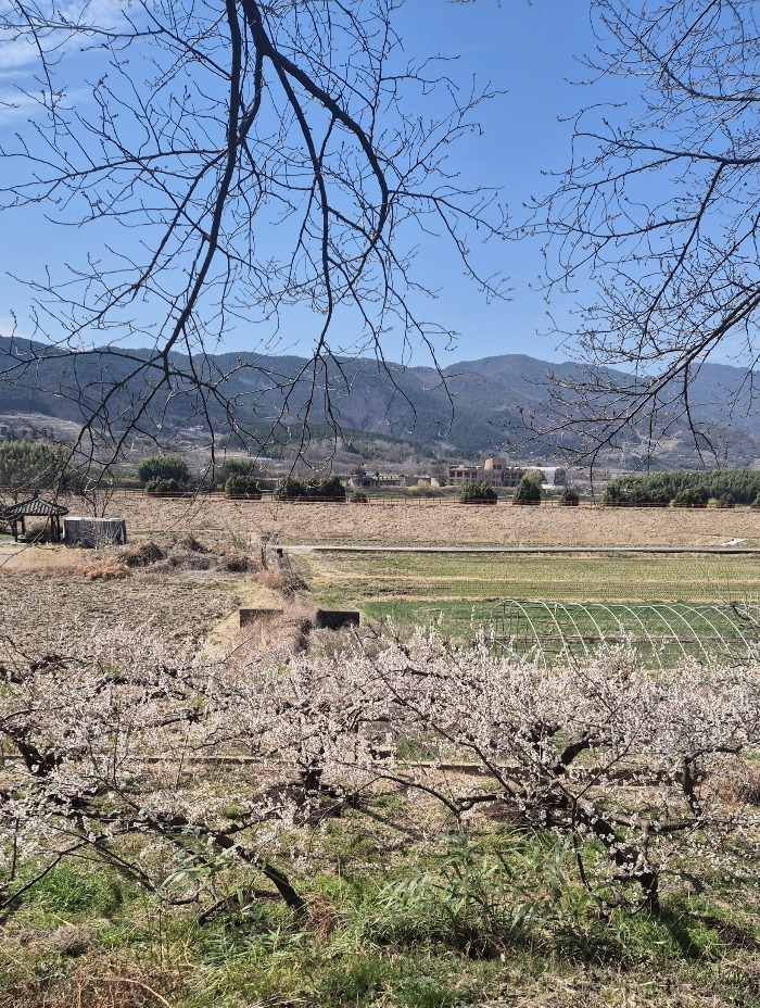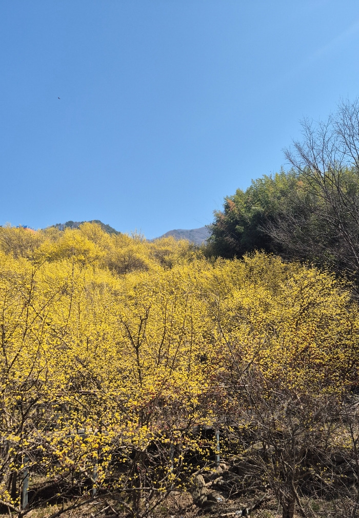 체크아웃을 하고 산수유 마을로 간다. 한국 산수유의 70%가 구례에 있다고 하더니 정말 굽이굽이 노란 물결이었다. 그리고 우리를 포함한 관광객들이 가득했다. 우리도 노란 한복, 아니 노란 스카프라도 메고 왔어야 하는 거 아닌가 생각하며 데크 길을 걷고 돌담길을 걸었다. 계곡이 흐르는 산수유마을. 아름다운 곳.