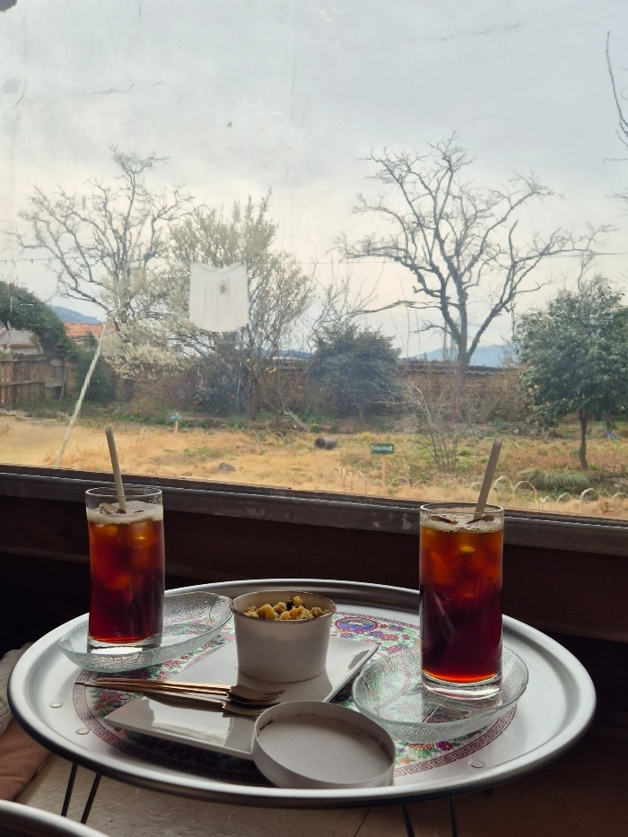 구례 오일장에는 싱싱한 과일과 제철 음식들, 그리고 뻥튀기가 있어서 너무나 사고 싶었으나 마음만 간직한 채, 점심으로 생선구이를 먹고 뻥튀기를 사서 차를 마시러 갔다. 내가 마신 건 코히 호지차였는데 그냥 호지차를 먹을 걸 하고 생각했다. 분위기도 좋고 맛도 좋은 곳.