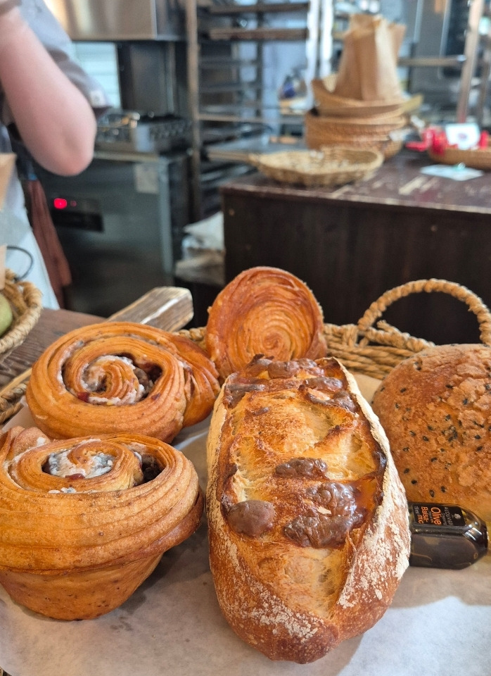 배 두드리며 나와서 목월빵집으로 갔다. 이곳도 대기 지옥이었으나 무사히 들어가서 각종 빵을 사 왔고, 걸어가면서 시나몬롤 뜯어먹는다. 입안 가득 퍼지는 시나몬과 버터의 향. 내가 가장 사랑하는 빵.