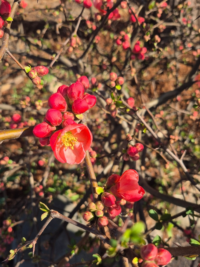 사성암에 가려고 주차장에 갔는데 주차 공간이 없어서 한참 멀리 대고 걸어갔다. 걸으면서 풍경을 본다. 곳곳이 봄이다. 봄 햇살에 피어나는 꽃망울들이 너무도 기특하다.
