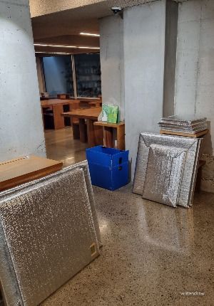 팀장님이 일찍 나와서 주차와 짐 운반을 도와주셨고, 포장을 뜯어주기를 기다리고 있는 나의 액자들을 펼쳐놓고 보니 알 수 없는 행복과 동시에 긴장감이 몰려왔다.