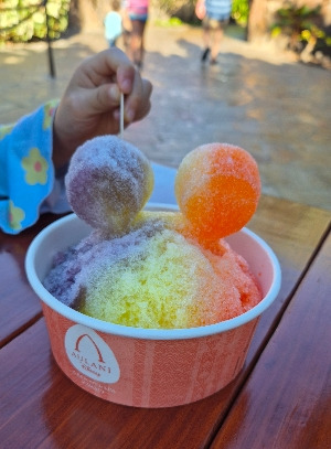 돌아오니 초5는 이미 혼자 수영하고 있어서, 숙소에서 색칠놀이를 하고 있는 둘째를 데리고 수영장으로 향했다. 할머니가 잠시 나오셔서 쉐이브 아이스를 사주시고는 산책하러 가셨다. 할머니가 떠나시고 엄마와 아빠는 맥주와 감튀를 먹었다. 아… 이 맛은 천국의 맛이다…!