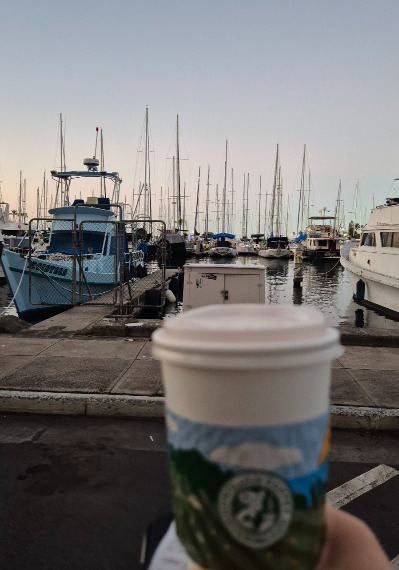 오늘도 아침은 컵라면과 누룽지이지만, 돌아갈 날이 얼마 안남아 새벽부터 월마트에 가서 하와이언 스위트롤과 바나나를 사고, 돌아오는 길에 코나커피에 들러서 따뜻한 라떼를 하나 사왔다. 커피 한 잔에 따뜻해진 마음을 갖고 돌아와 더 따뜻한 컵라면을 먹고 서둘러 출발했다.