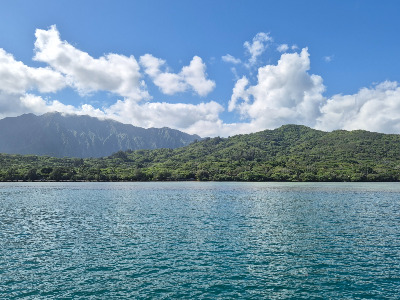 또 쥬라기 공원을 지나(이 정도면 출근 도장 수준) 배를 타고 샌드바로 간다. 도넛과 음료를 먹고, 우쿨렐레 노래를 들으며 갔다. 아름다운 풍경 사이의 어느 바다 스팟에 멈춰서서 스노쿨링 장비를 받았다. 설명을 듣고 물안경을 끼는데, 스노쿨링을 처음 해보는 아이는 물안경이 꽉 껴서 숨을 못 쉰다고 난리를 친다. 할 수 있다고 응원하며 바다에 들어가는데, 바닷물이 차가워서 못들어간다며 오두방정을 떠느라 뒷사람들까지 들어가지 못하고 줄을 길게 서있다. 아이들을 재촉하다가 결국 “야!” 하고 소리를 꽥 질러버린 엄마…에게 외국인 가이드분이 “엄마? 엄마?!” 하며 진정하라고 한다….아…어글리 코리안 ㅠ