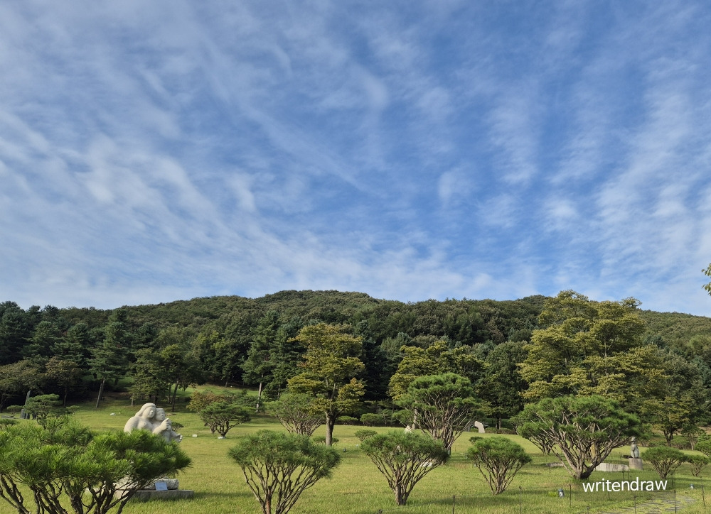 조각이 있는 정원을 지나 뒷 산으로 간다.