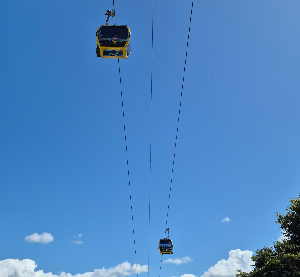 출렁다리에 갔다. 배가 고파서 간현 유원지의 금강산 식당에서 감자전과 산채비빔밥을 먹고 케이블카를 타러 갔다. 날이 좋아서인지 북적북적 사람이 많기도 했다. 케이블카 티켓을 끊어서 할머니, 엄마(나), 딸, 셋이 나란히 케이블카에 탔다.