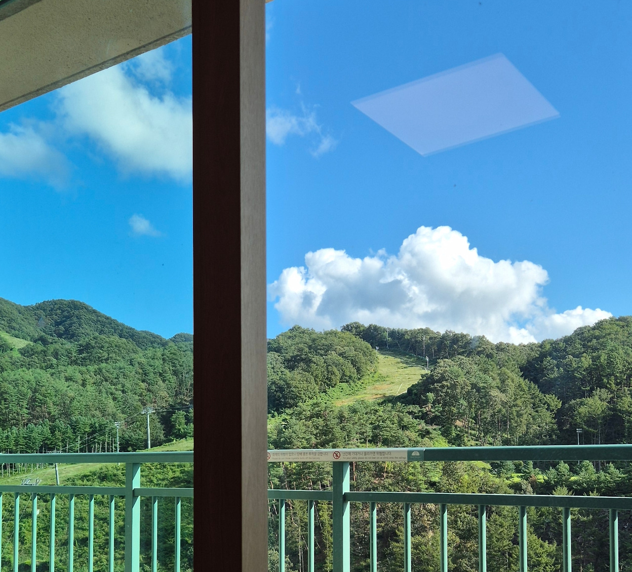 꽤 고층인 12층이어서 바로 앞의 골프장의 분수도 보이고 저 멀리 숲이 보였다.