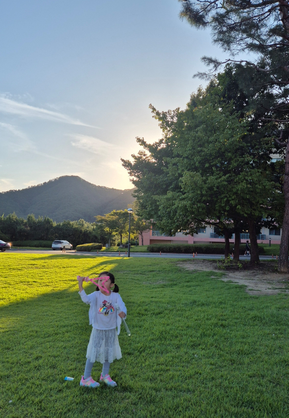 가서 킥보드도 타고, 비눗방울도 불고, 솜사탕까지 사 먹였더니 6세 어린이는 세상 다 가진 표정으로 뛰어다닌다. 뉘엿뉘엿 해가 지는 풍경 속에 뛰노는 어린이를 보는 것만큼 흐뭇한 일이 있을까.