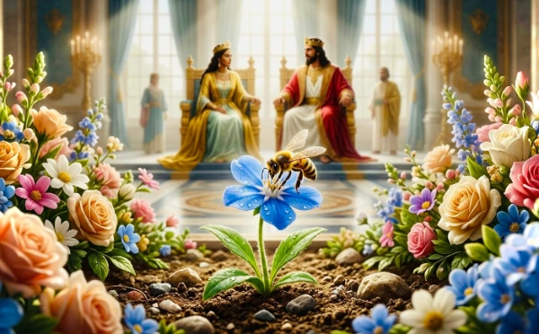 난제(Riddle): 스바여왕은 살아있는 꽃처럼 정교하게 만든 수십 개의 조화 속에 보잘 것 없는 생화 한 송이를 숨겨놓고 솔로몬에게 물었습니다. “지혜로운 왕이여, 인간의 기술로 빚은 저토록 완벽한 조화들 중에서, 곧 시들어 사라질 운명인 단 하나의 생화를 찾아보시오.“