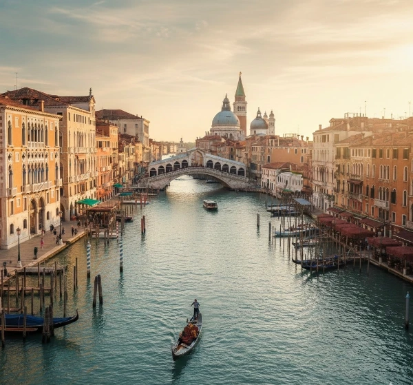 이러한 건축물들의 위용은 베네치아의 동맥인 대운하와 한데 어우러져 수변문명의 정점을 완성합니다. 즉, 대운하의 S자 물길을 따라 곤돌라를 타고 유영하면, 화려한 팔라초(대저택)들과 대운하의 꽃인 리알토 다리의 수려한 곡선미가 자아내는 낭만적인 정취를 물씬 느낄 수 있습니다.