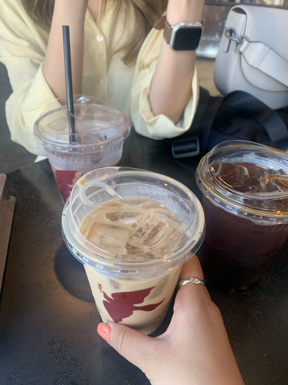친구는 커피를 하루에도 두어 잔씩 마신다.