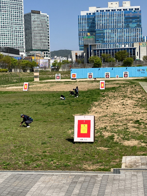 지난 주말에 날이 너무 좋아서 활을 내고 왔다. 아무리 주말이라지만 아침부터 사람들이 평소보다도 더 많은 것이 봄날을 만끽해야겠단 생각을 한 사람이 나뿐만은 아니었나 보다. 활을 세 순 내고 화살을 회수하러 다 같이 걸어가는데 그 행렬이 제법 길다. 평일과는 다른 활기찬 기운이 내 몸을 가득 채우는 게 느껴진다.